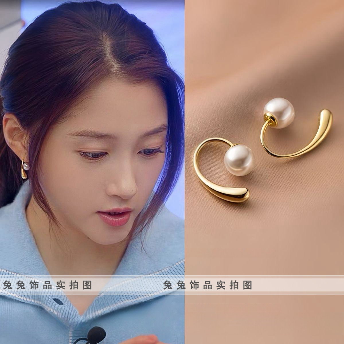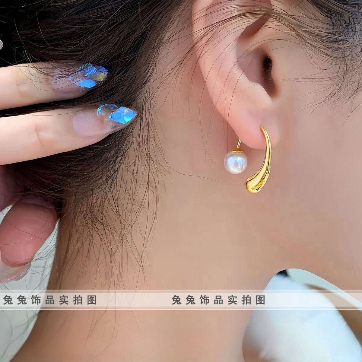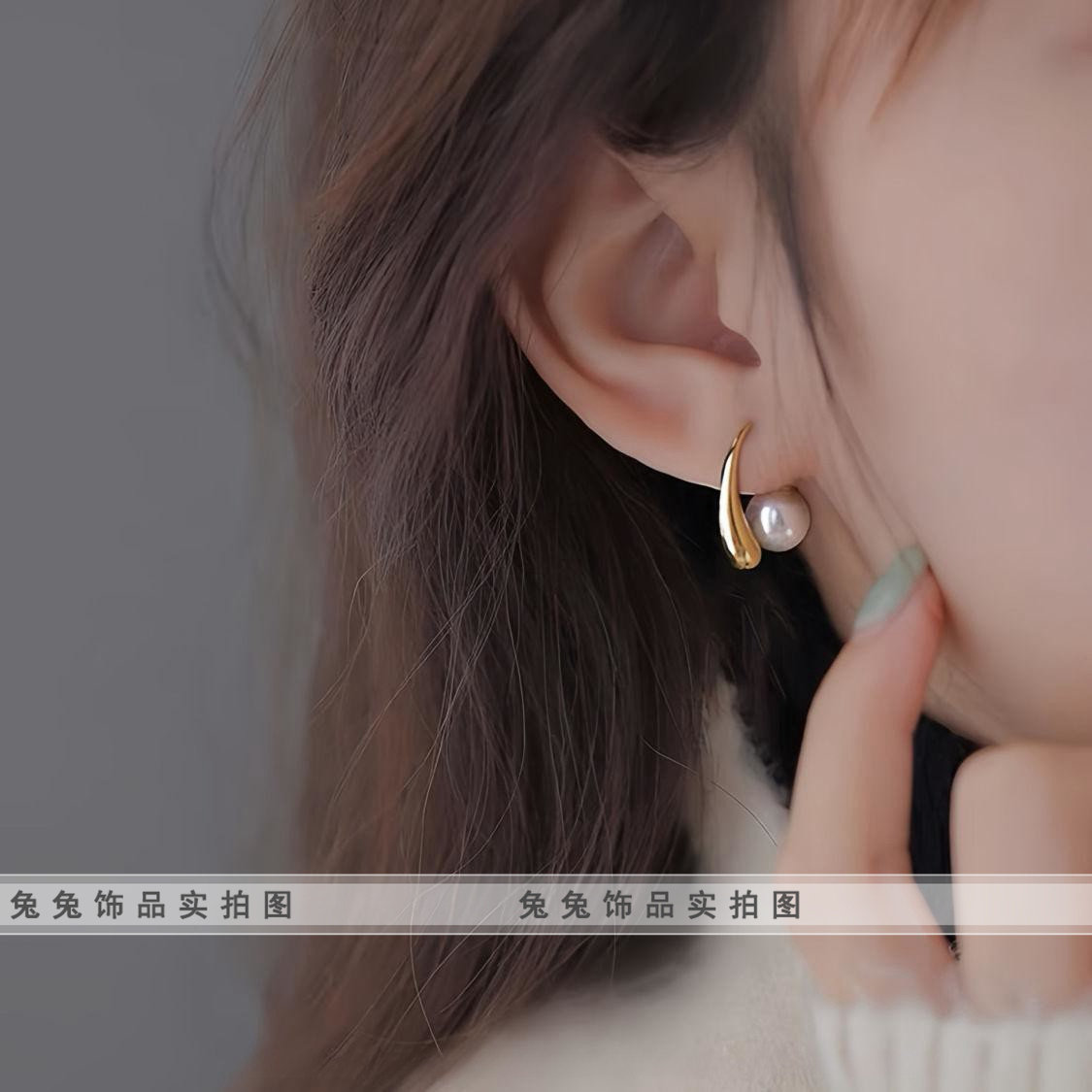 【钛钢不掉色】明星同款弯钩小水滴baby贝珠短款耳饰闺蜜耳环ins