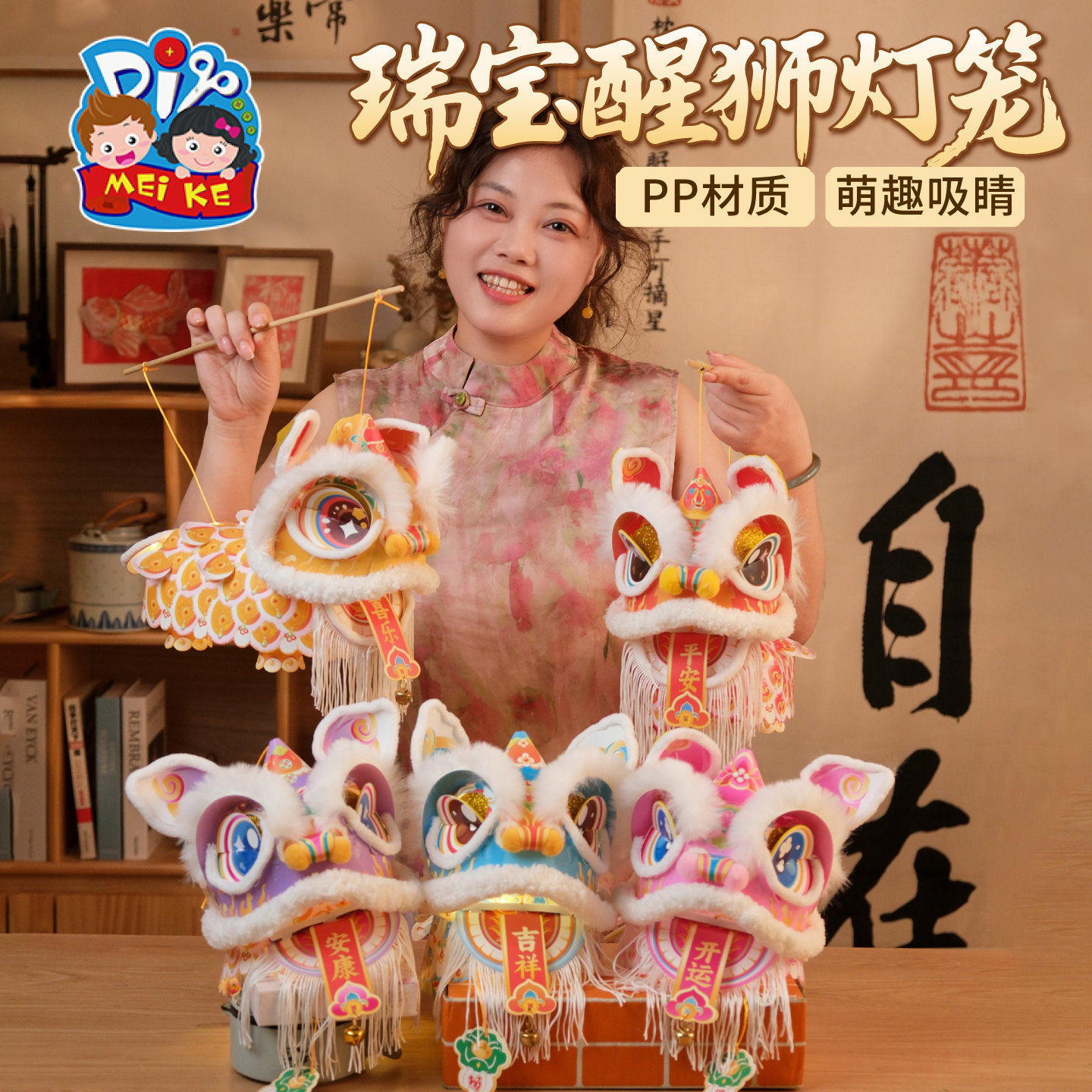 瑞宝醒狮灯笼手工diy狮子花灯