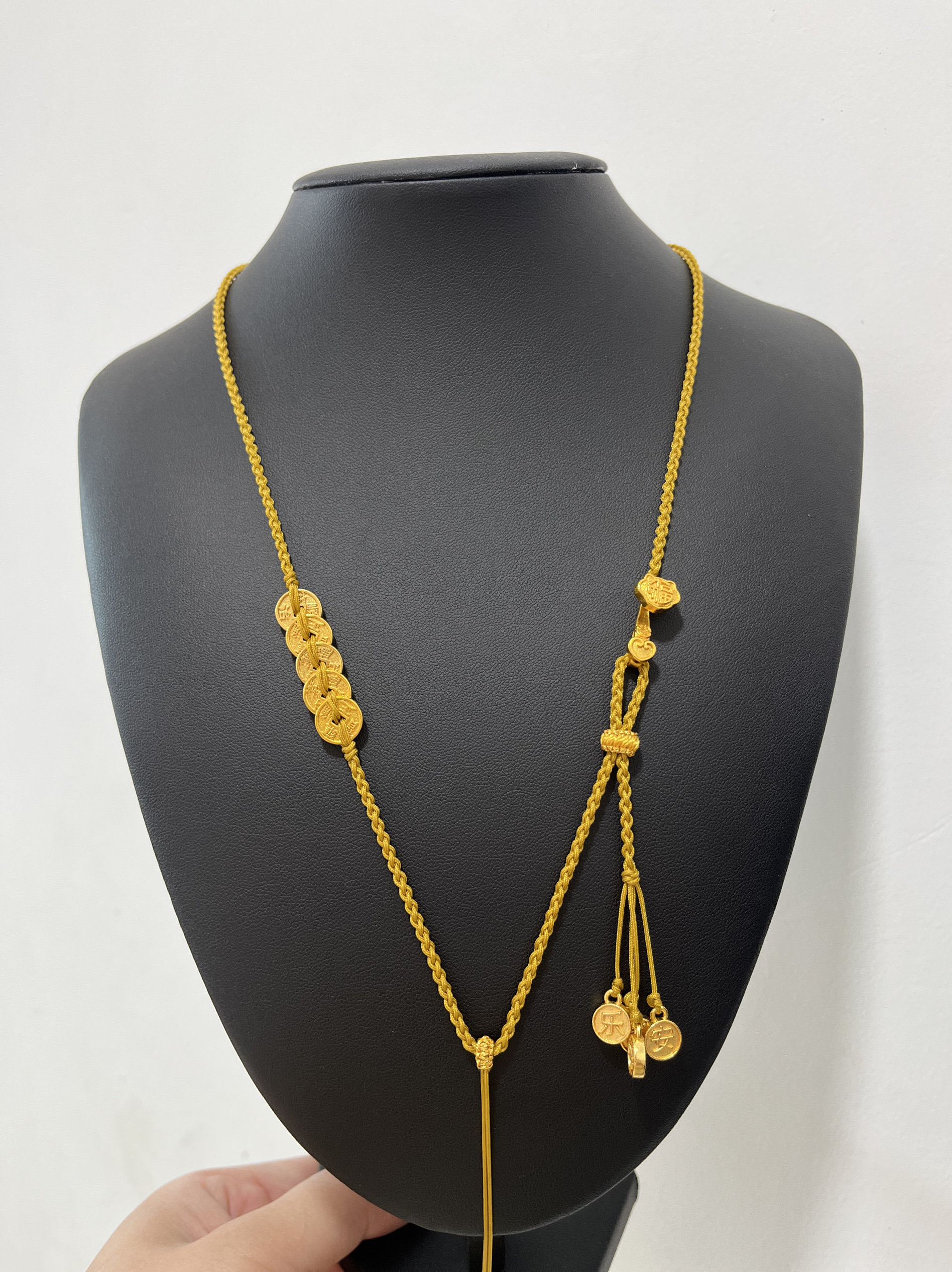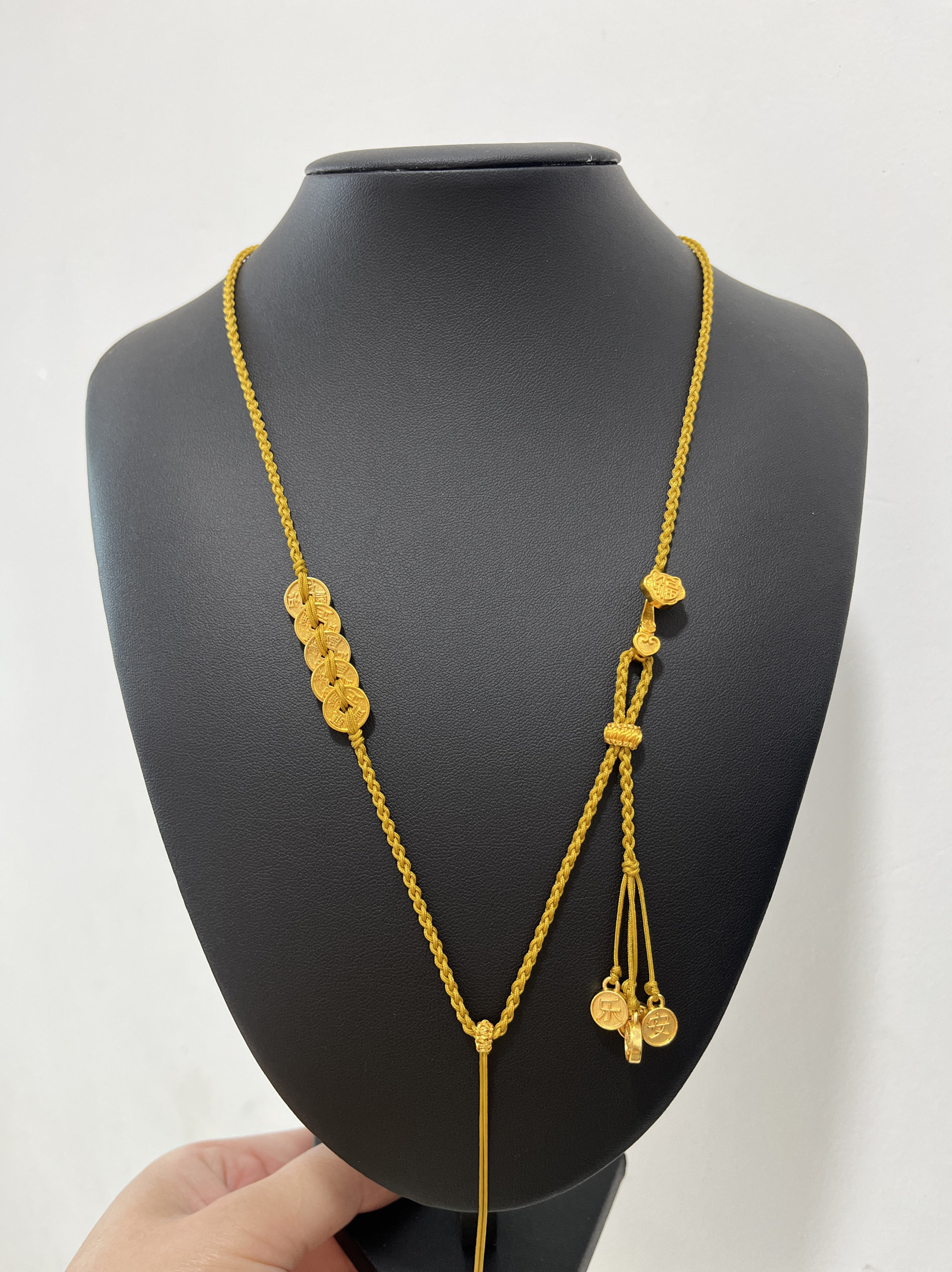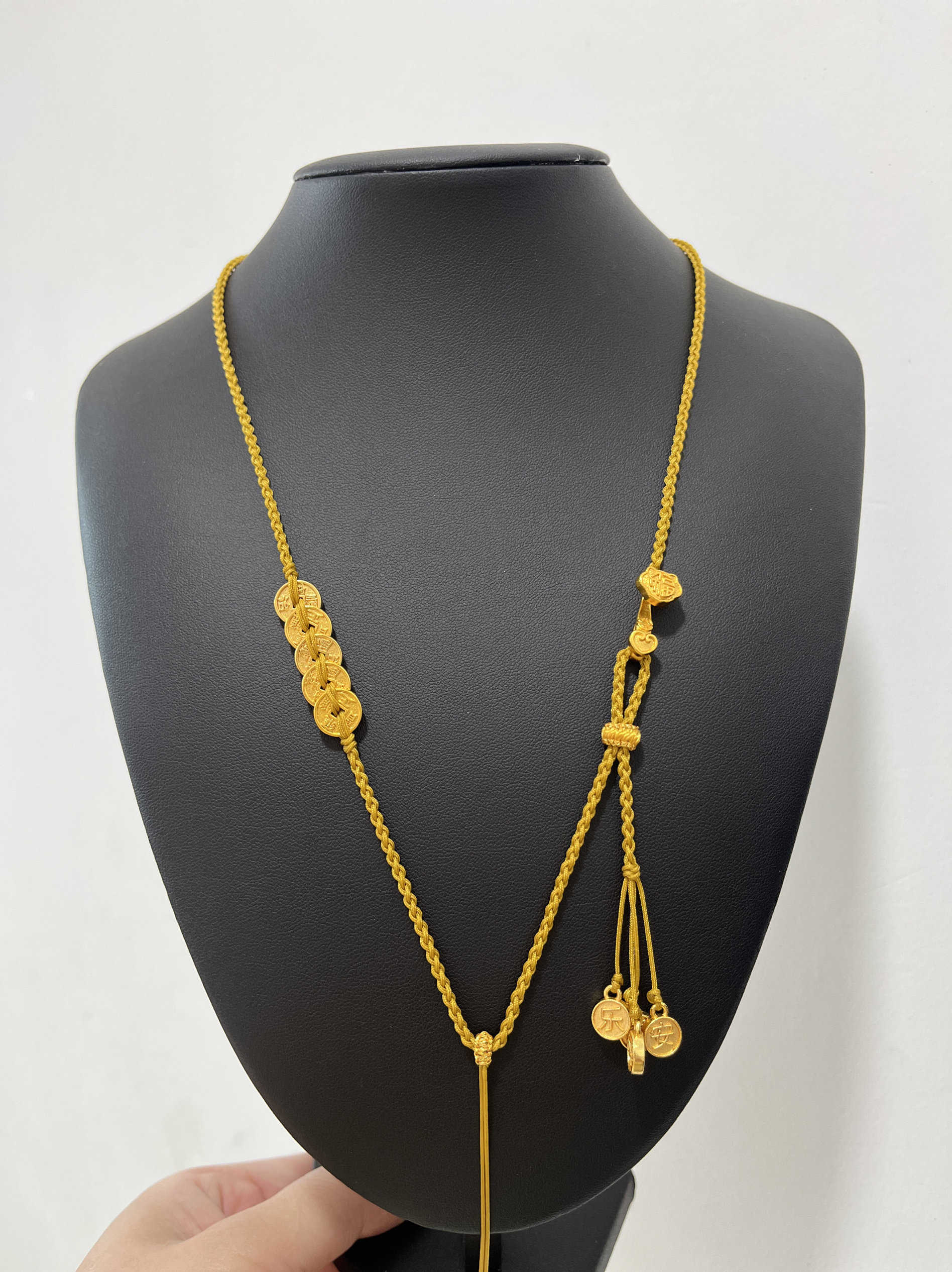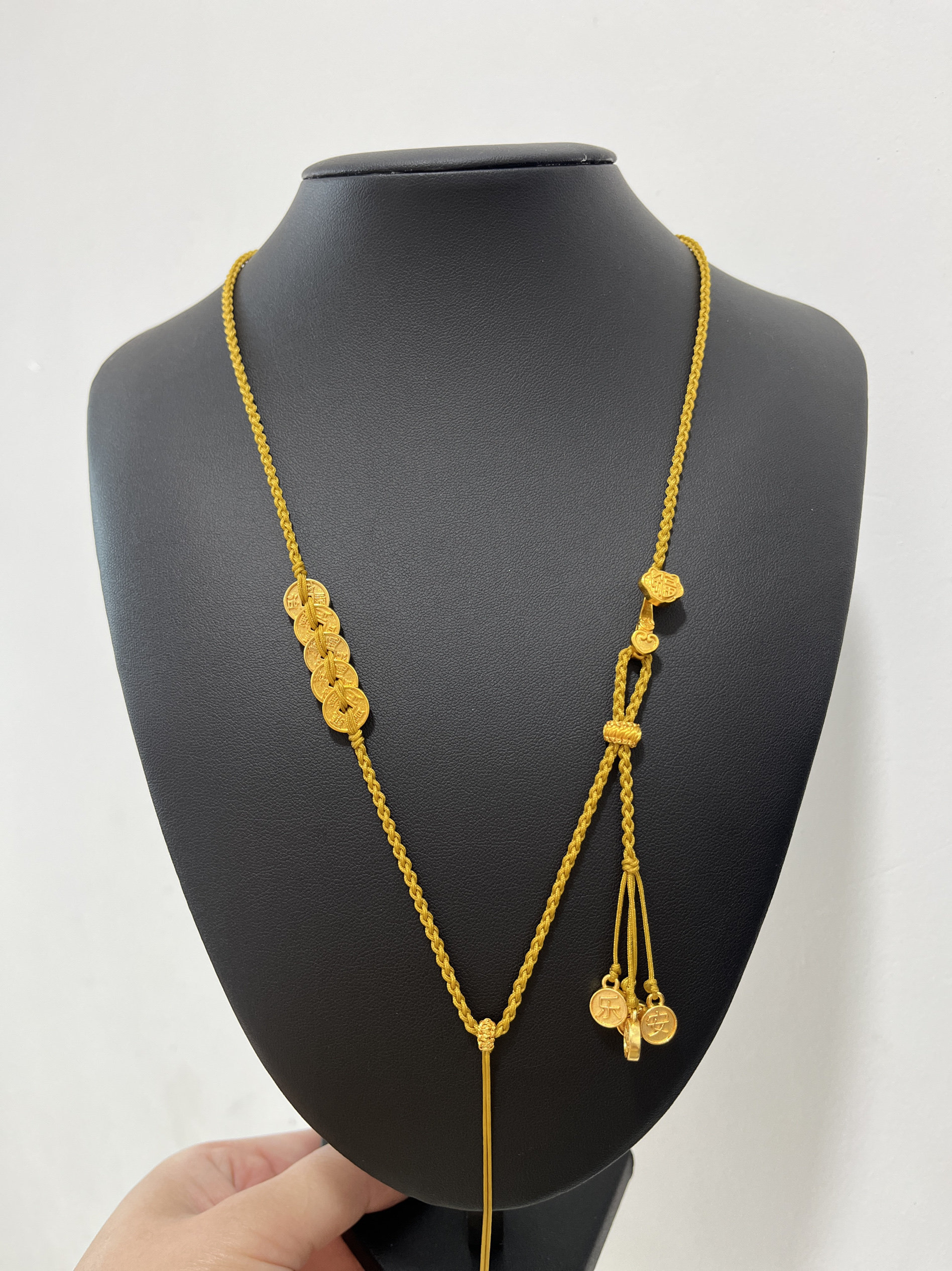 原创新款纯手工编织四股编细款五帝铜钱项链绳可调节女士毛衣链