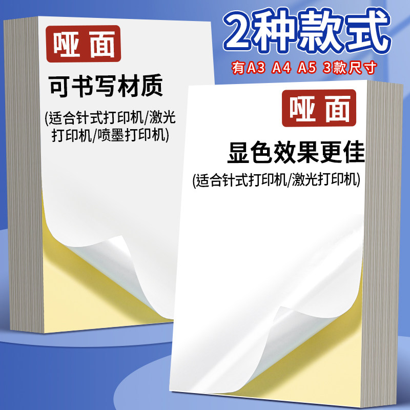 光面哑面a4不干胶贴纸二维码logo打印空白背胶纸黄色标签贴纸可打印机小标签喷墨自粘纸纸张