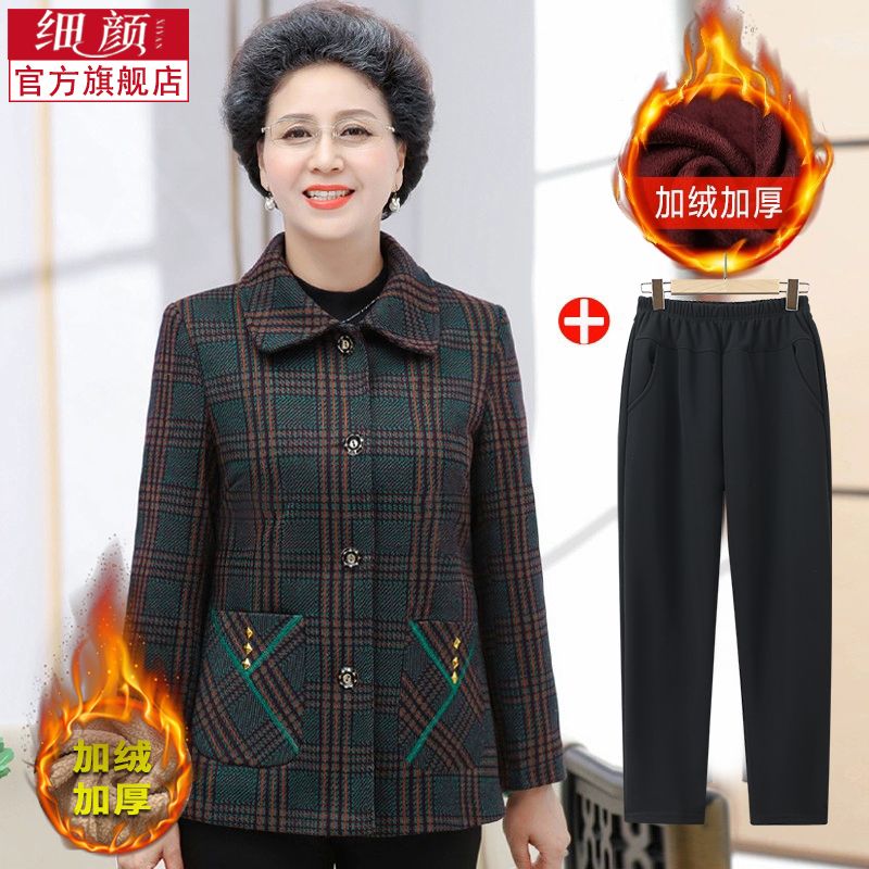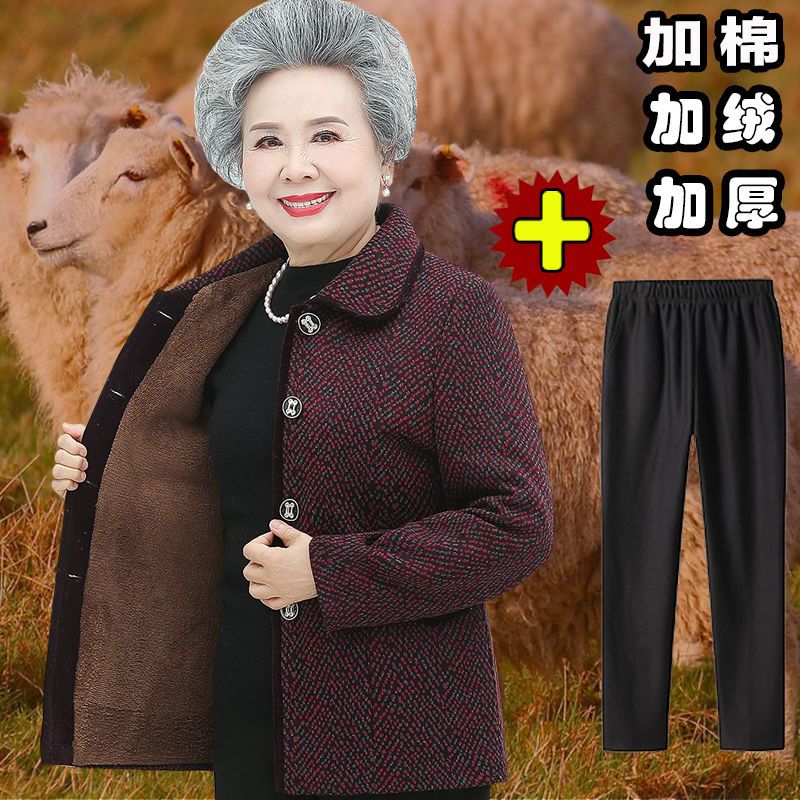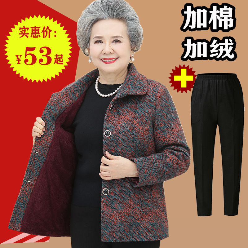 套装中老年人外套女妈妈装加绒厚秋冬装外套衣服奶奶装60-70-80岁