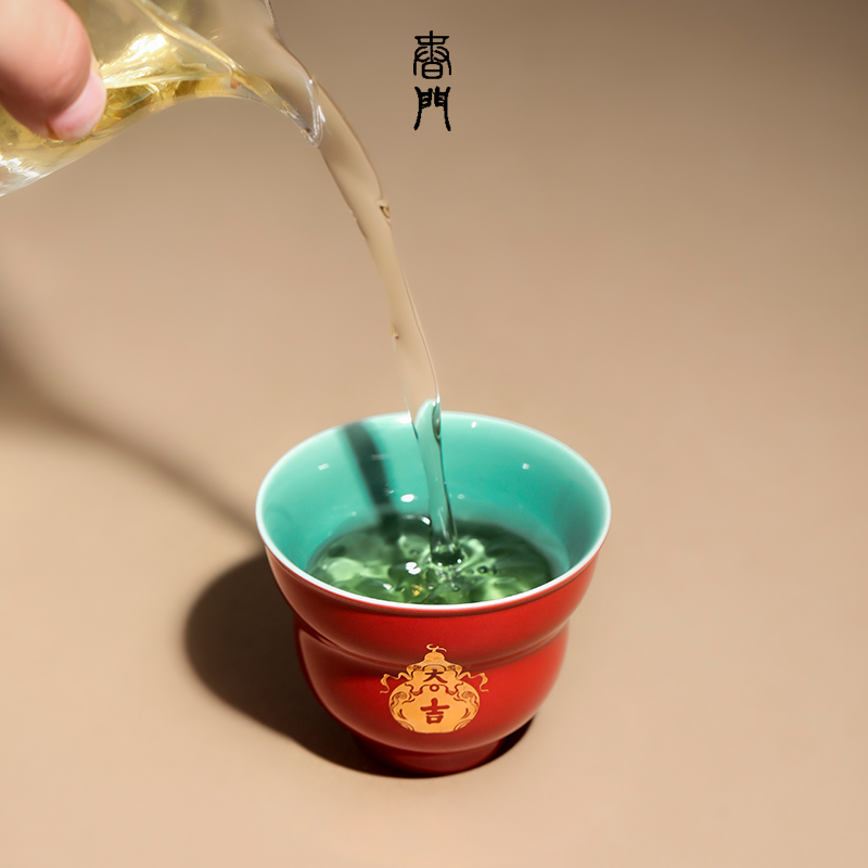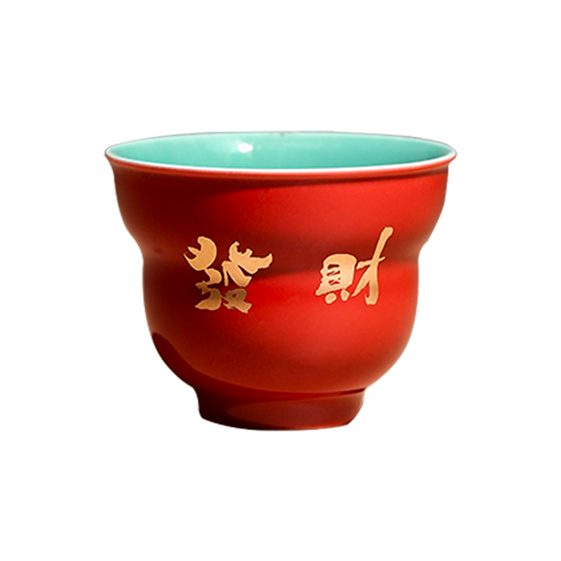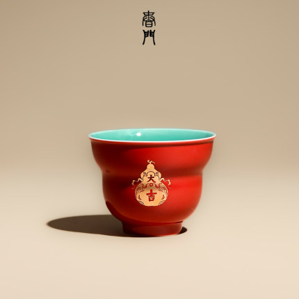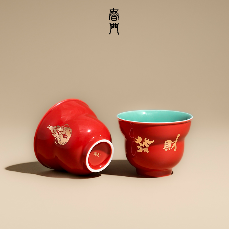 春门故宫红福禄杯陶瓷茶杯主人杯