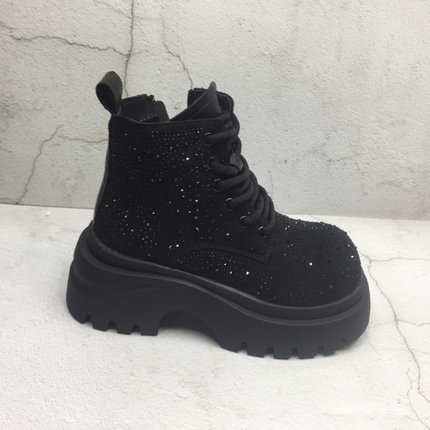 品牌撤柜2025秋季新款断码处理女鞋圆头烫钻时尚松糕底加绒马丁靴