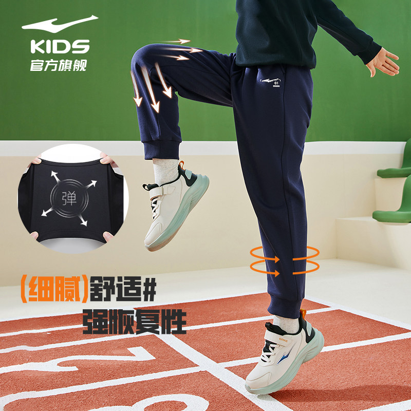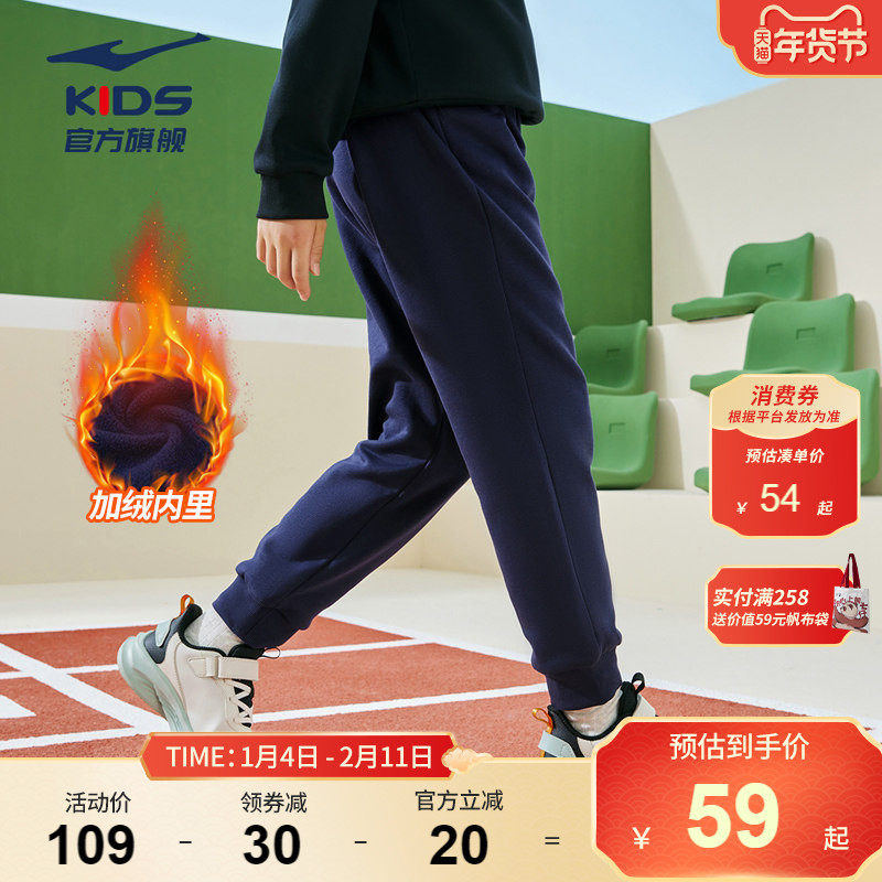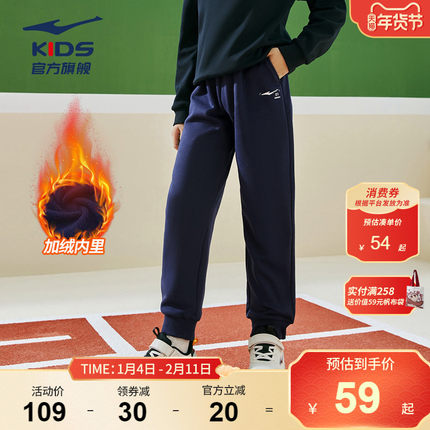 鸿星尔克儿童加绒裤子冬季新款男童摇粒绒休闲卫裤保暖运动长裤