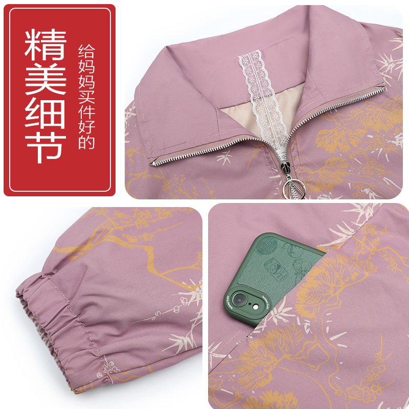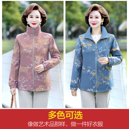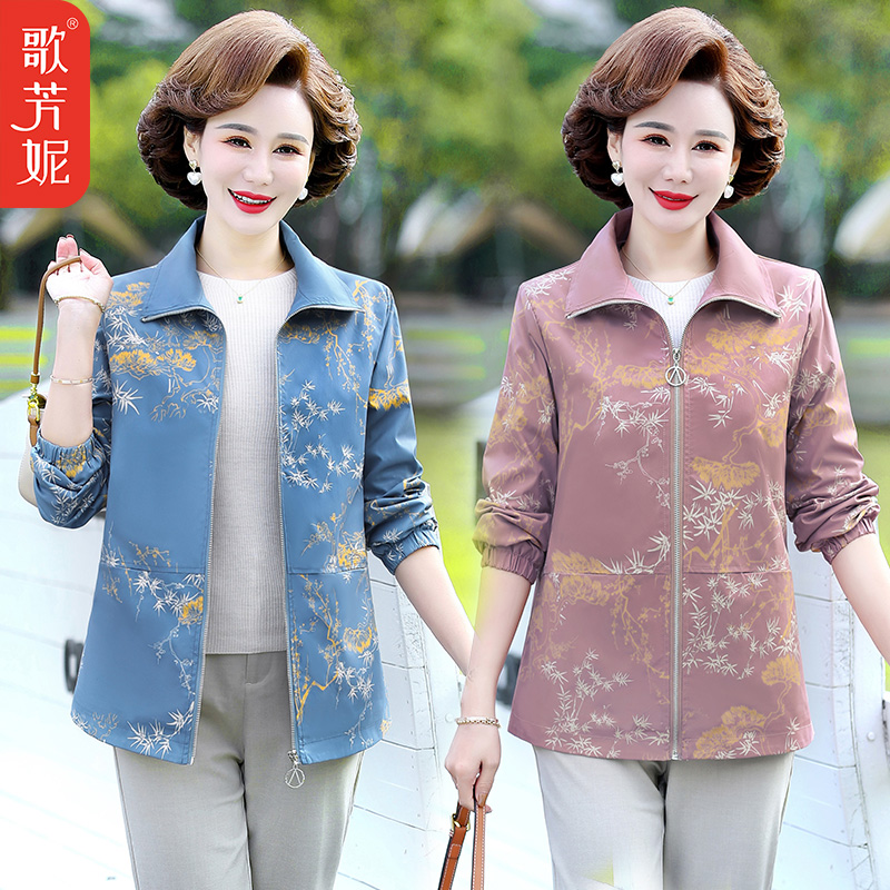 妈妈装休闲碎花夹克外套洋气春装中老年女装短款风衣西装中年女士