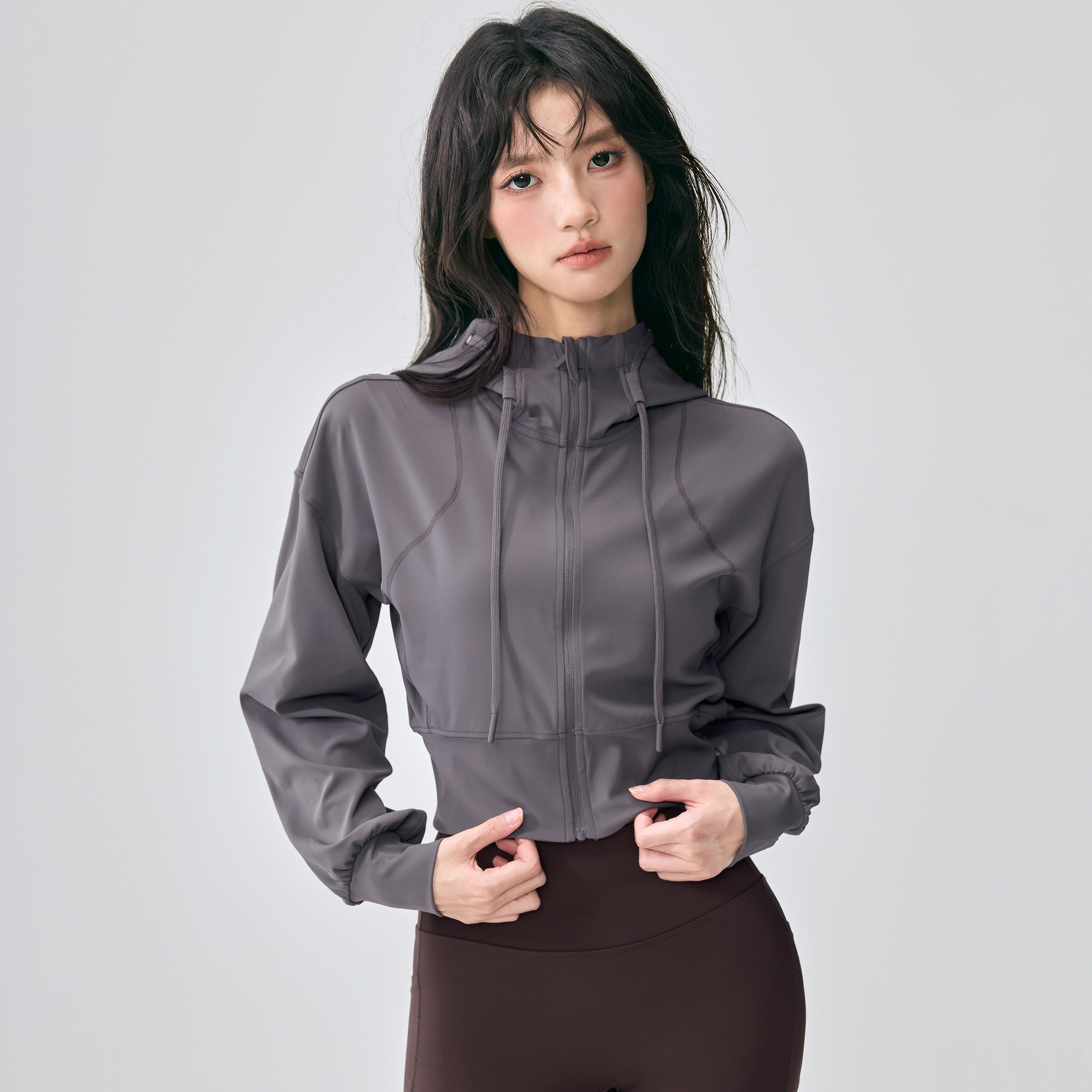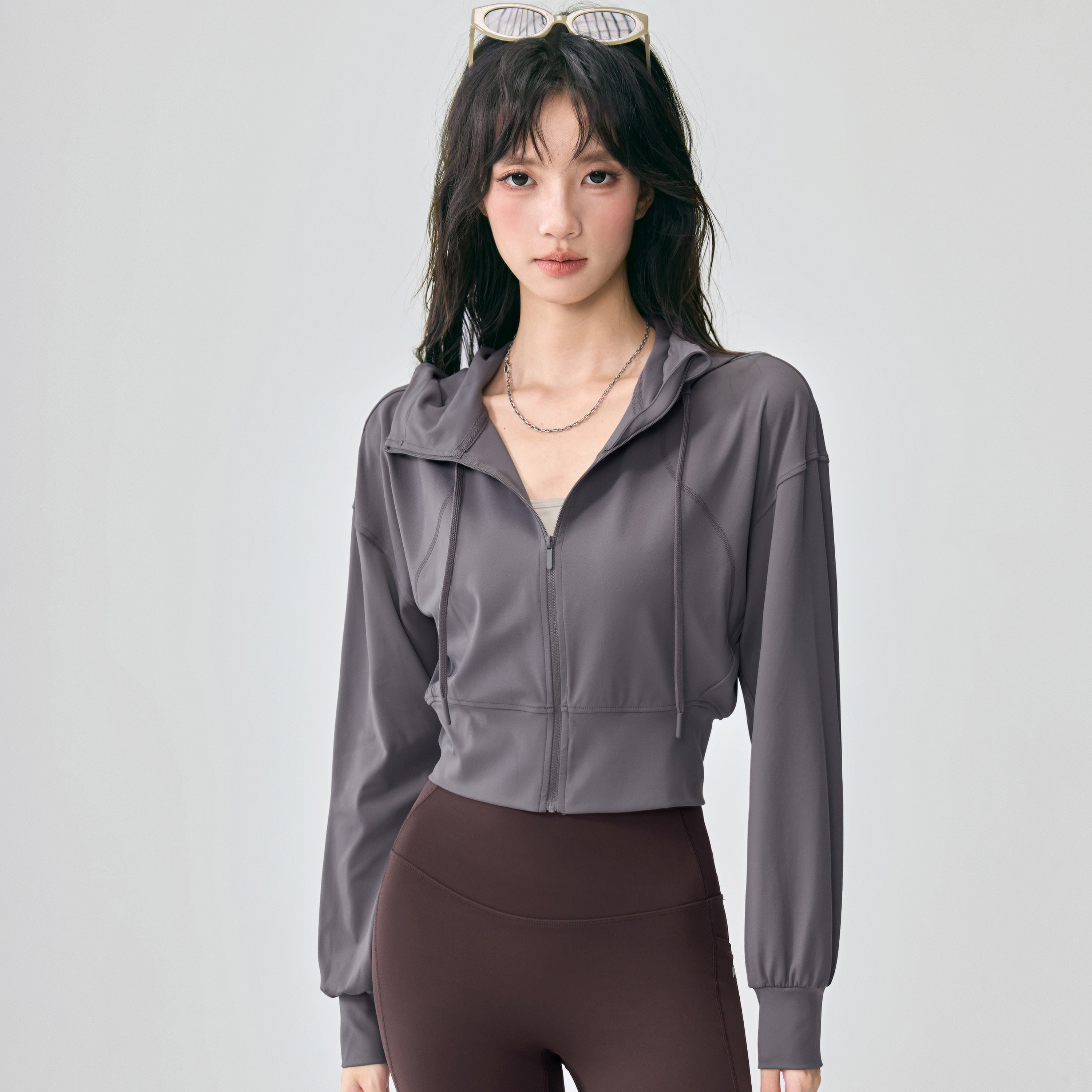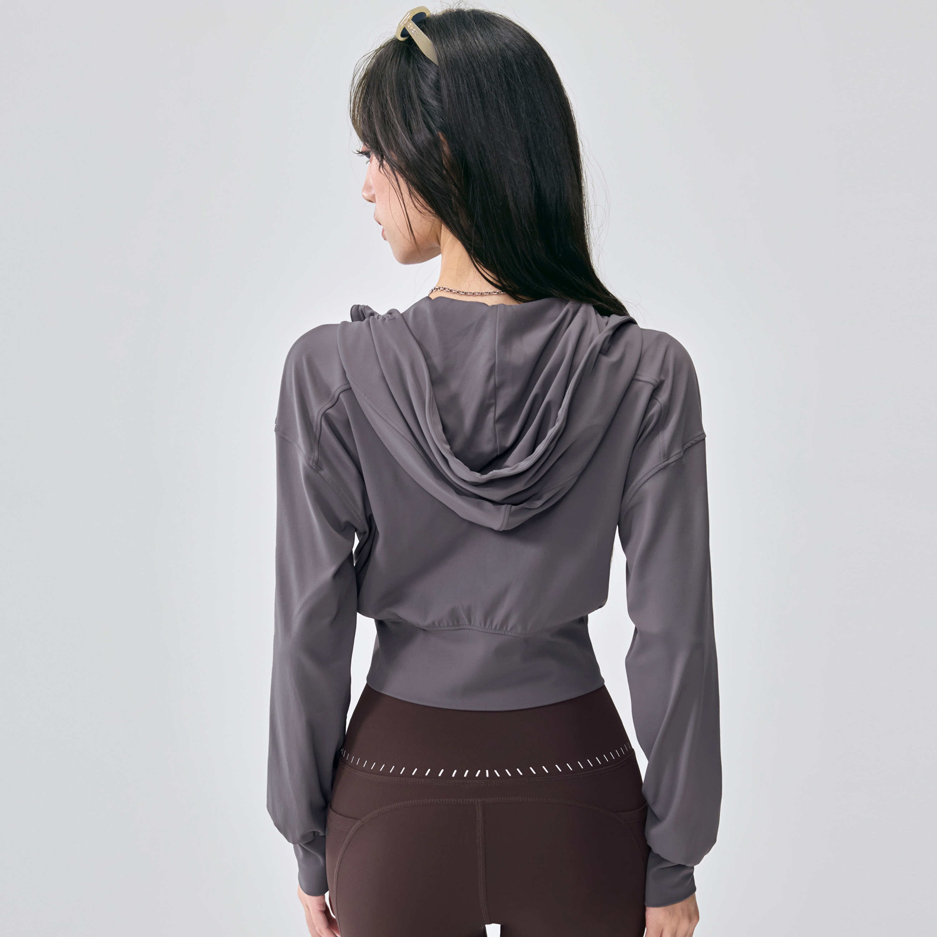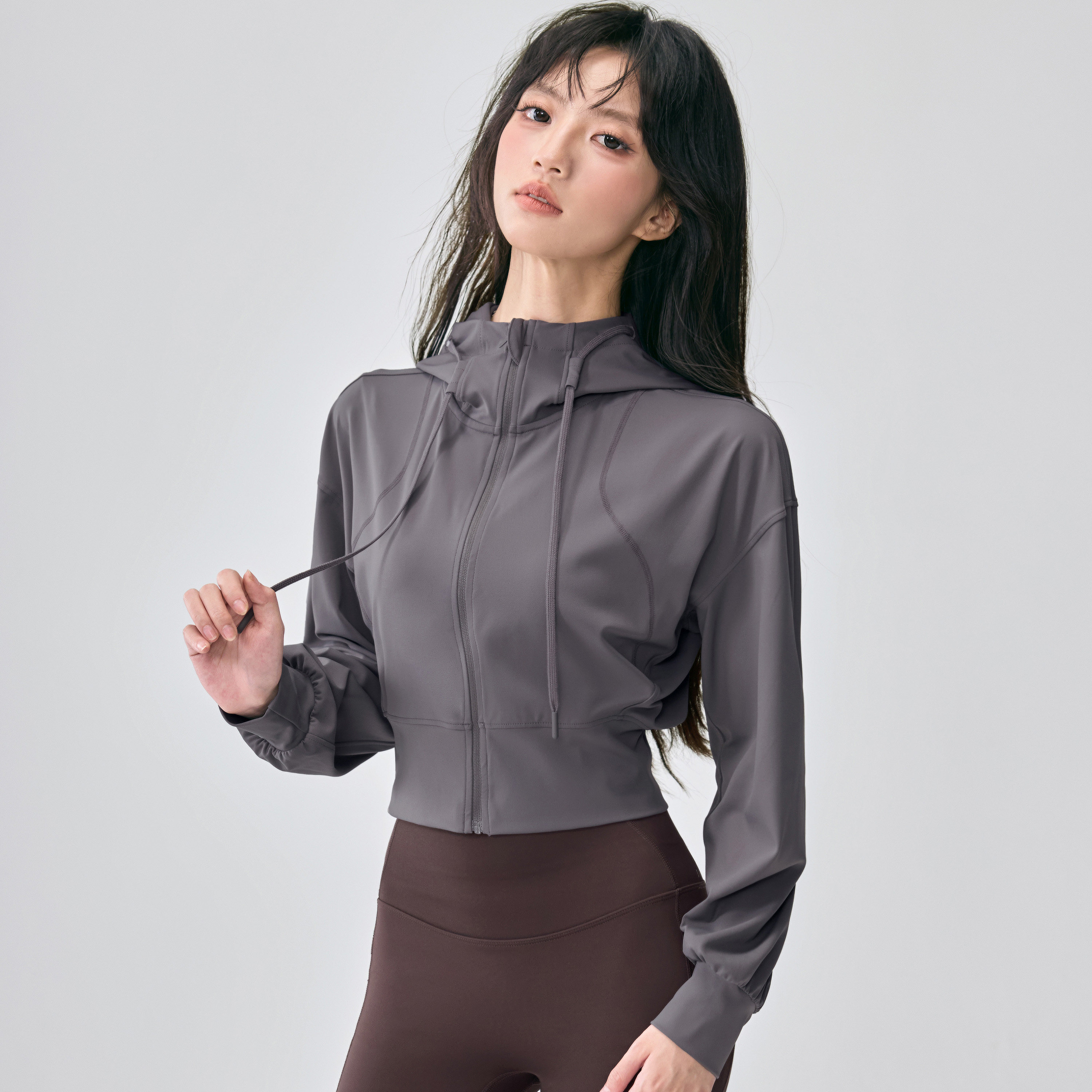连帽运动外套女宽松显瘦瑜伽服长袖新款跑步普拉提训练健身上衣秋