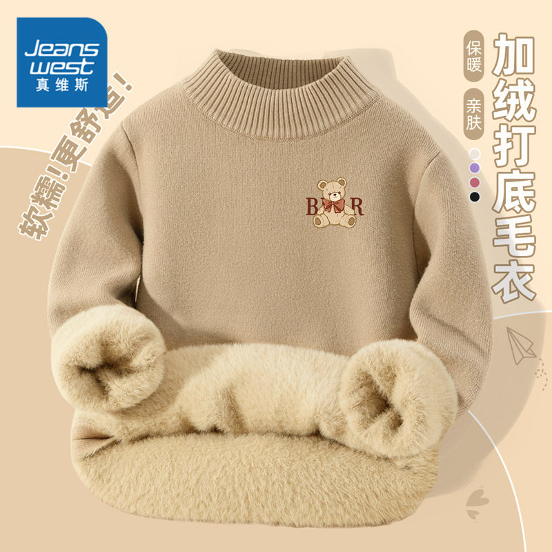 真维斯童装女童加绒毛衣秋冬大童加厚一体绒针织衫儿童冬季打底衫