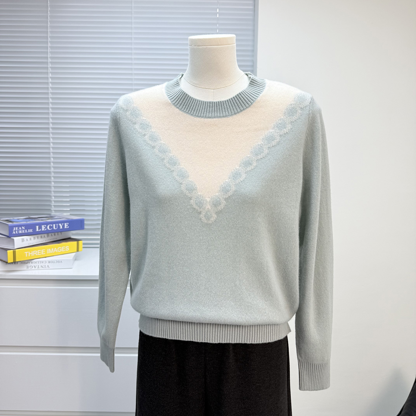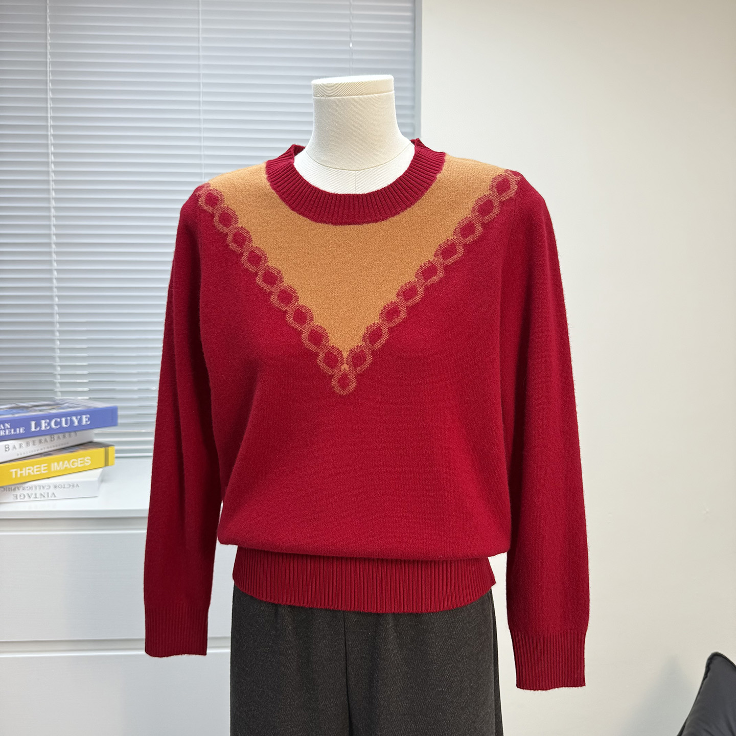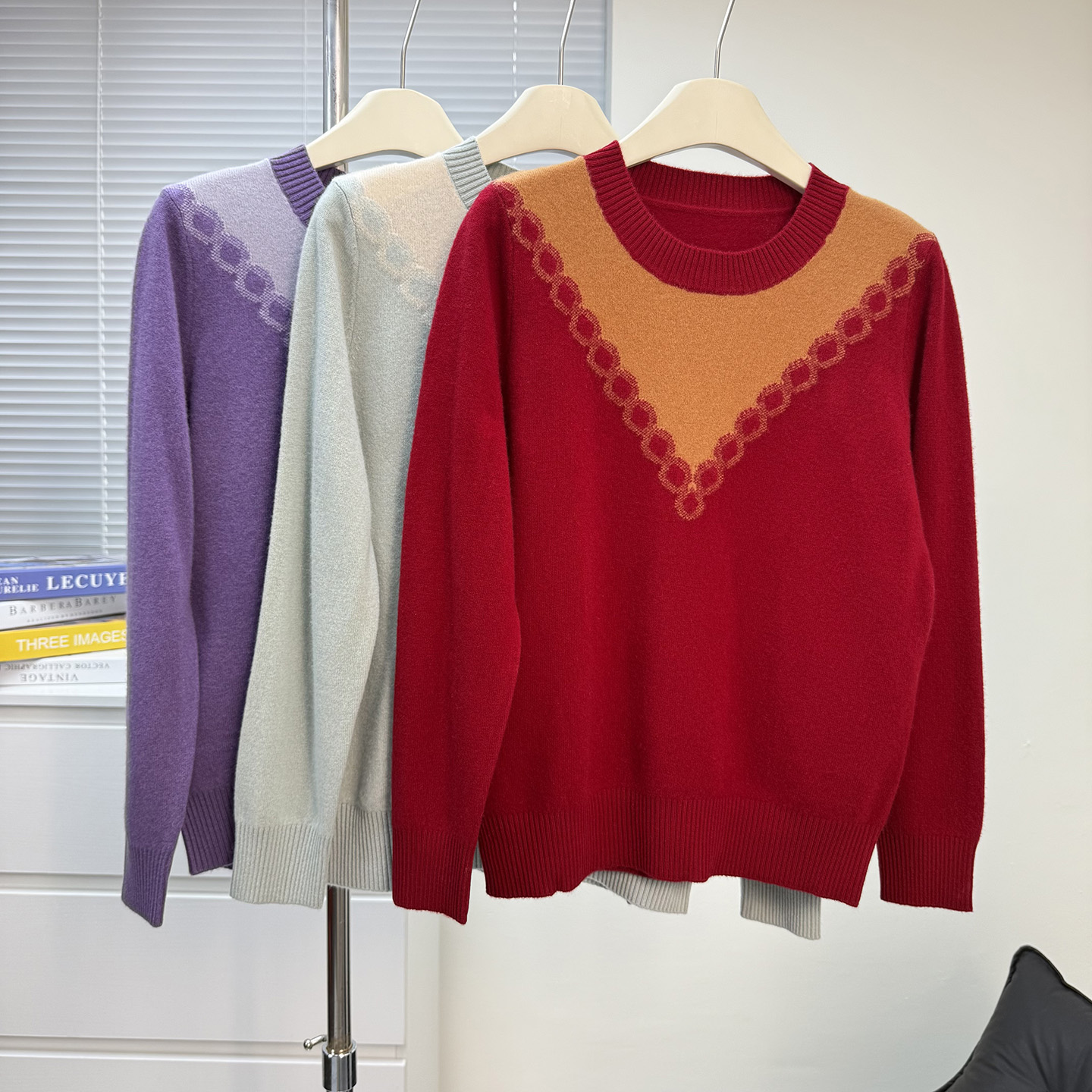 妈妈装羊毛衫女100纯羊毛秋冬毛衣中老年女装宽松拼接打底衫上衣