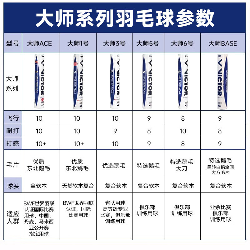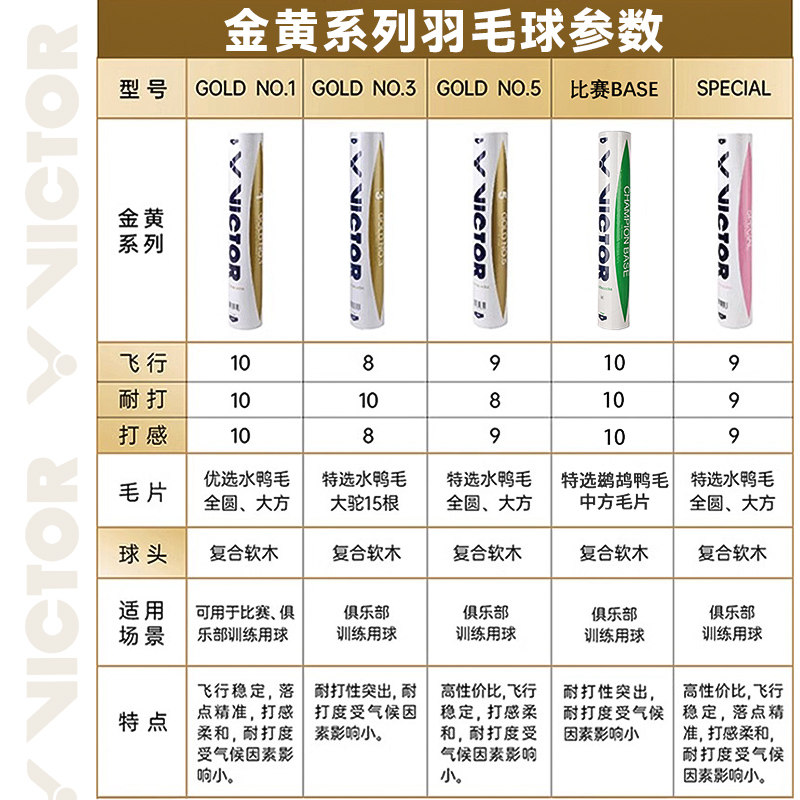 正品Victor胜利羽毛球金黄3号1号比赛8号大师6号碳音球专业球耐打