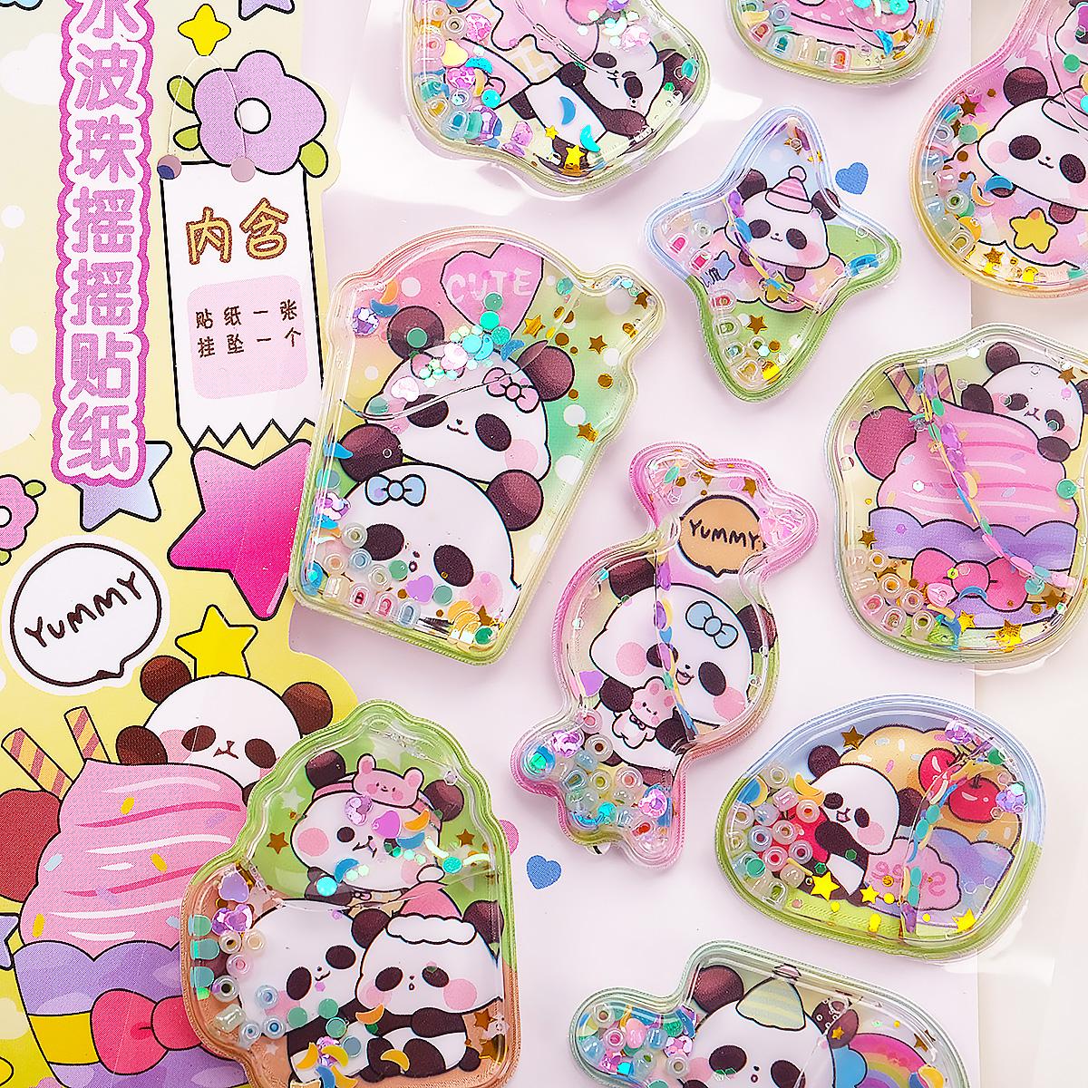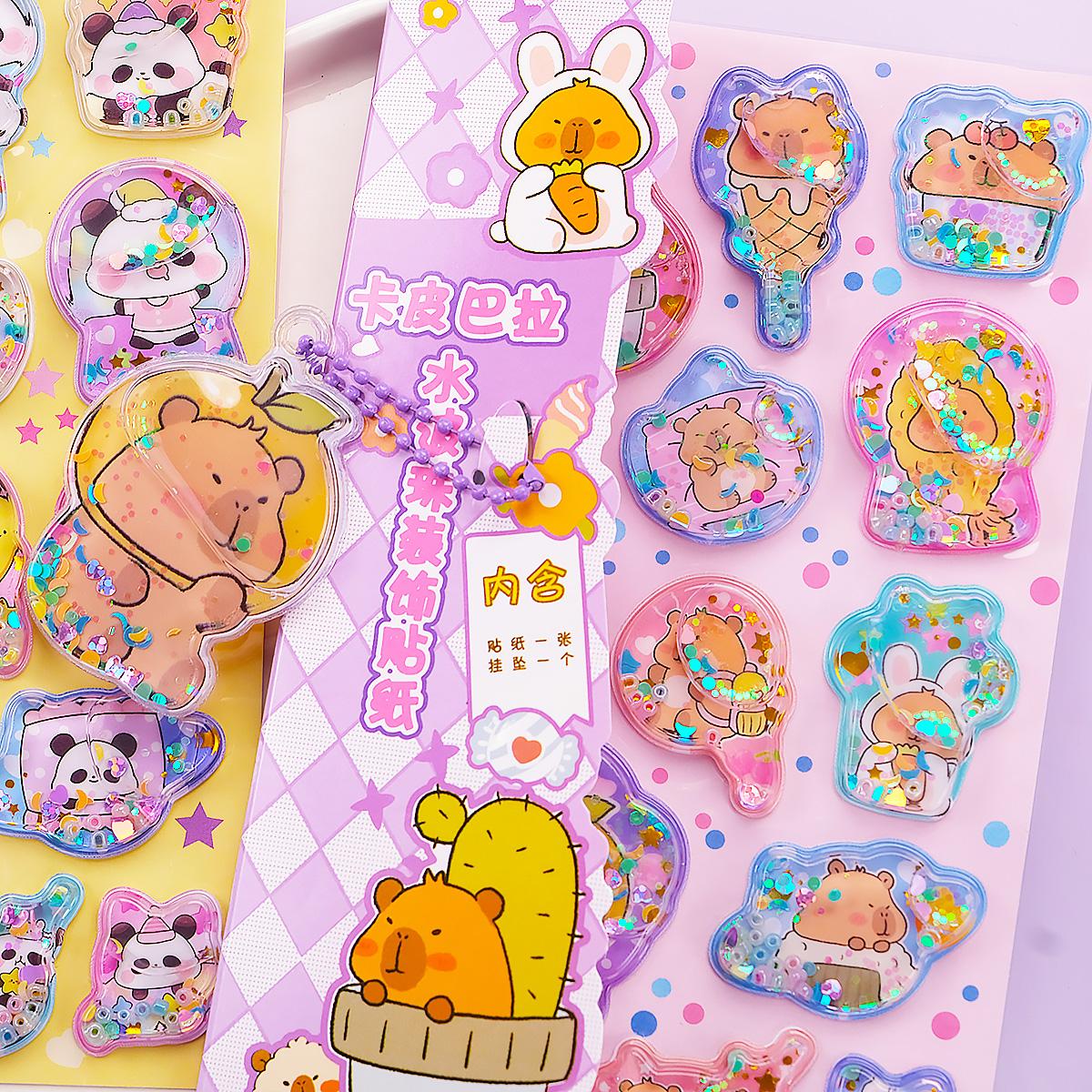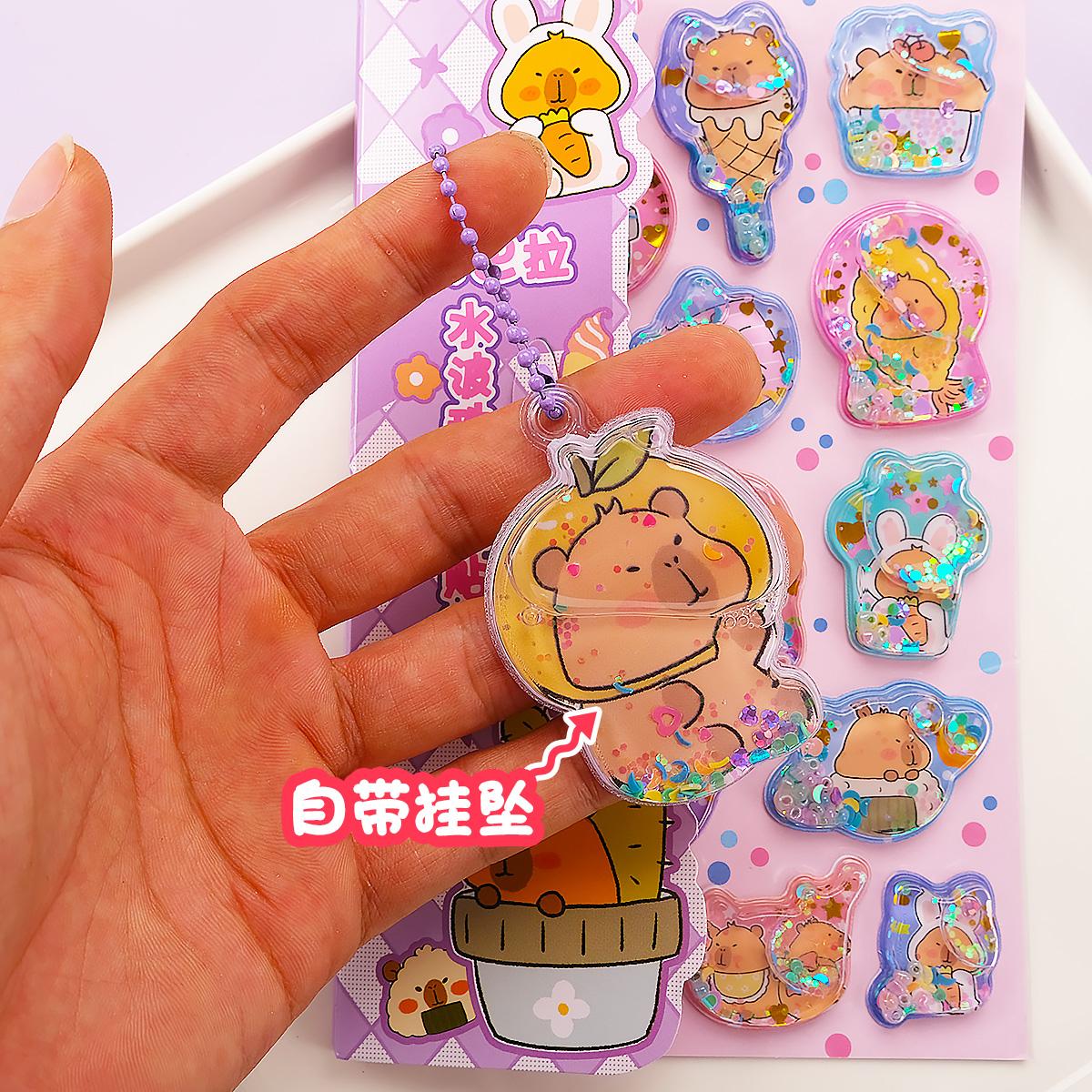 高颜值卡皮巴拉立体钻石闪亮流沙摇摇水贴纸可爱熊猫女孩挂件贴画