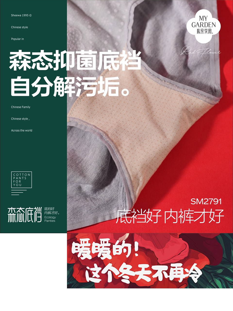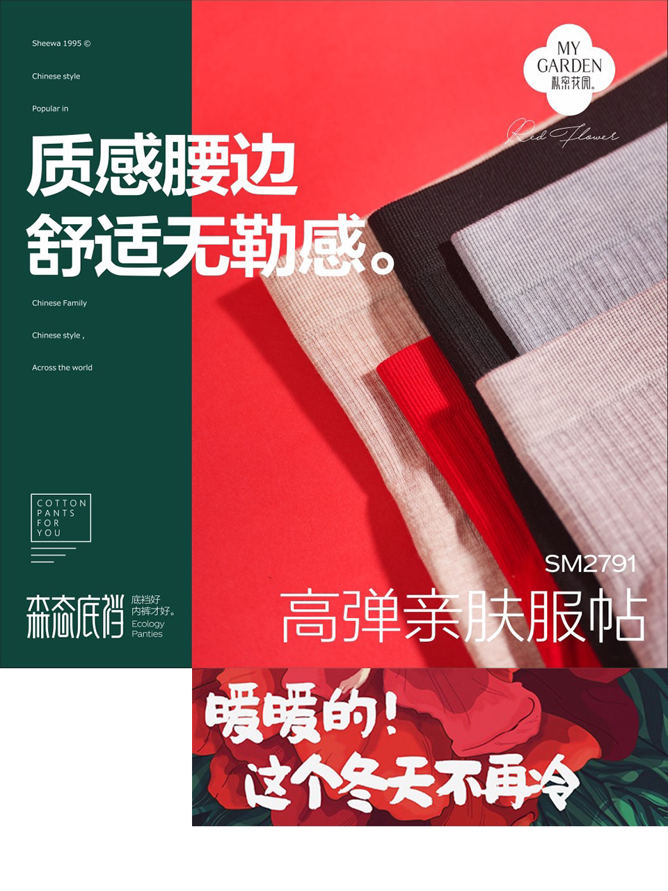 私密花园藏红花2791暖宫高腰收腹提臀舒适透气抑菌底裆女士内裤