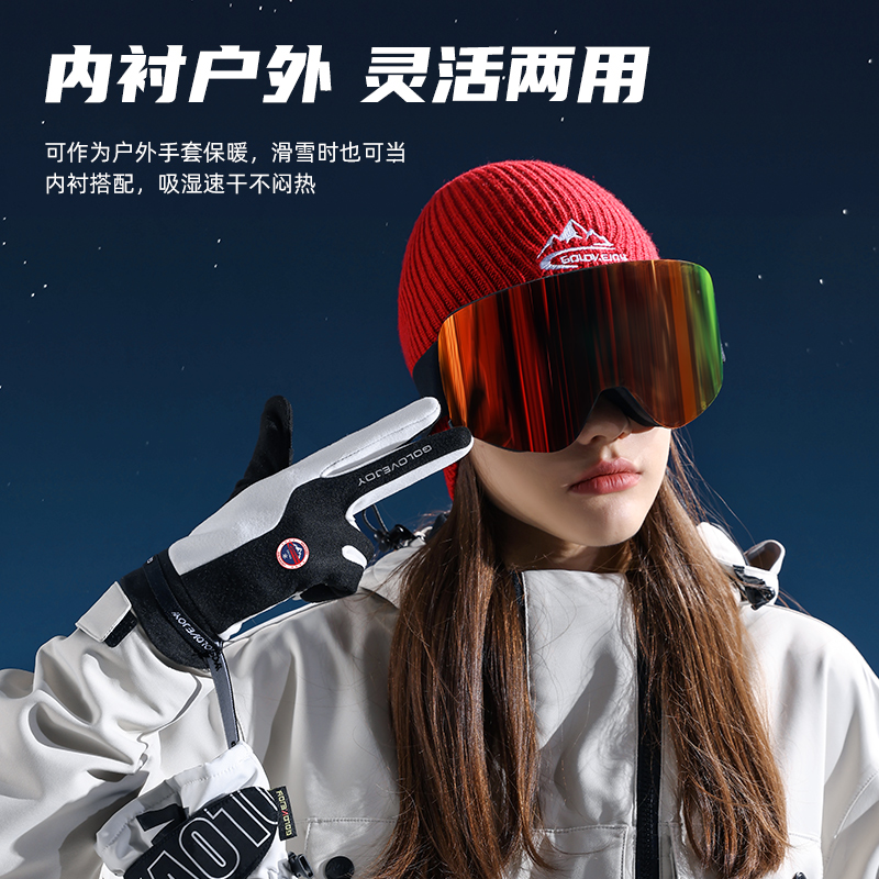 滑雪手套内胆触屏加绒防泼水单双板内衬保暖内搭防滑速干骑行手套