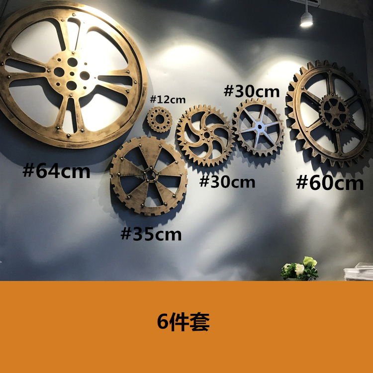 复古工业风仿金属装饰齿轮KTV酒吧餐厅木质壁饰挂钟创意个性壁挂