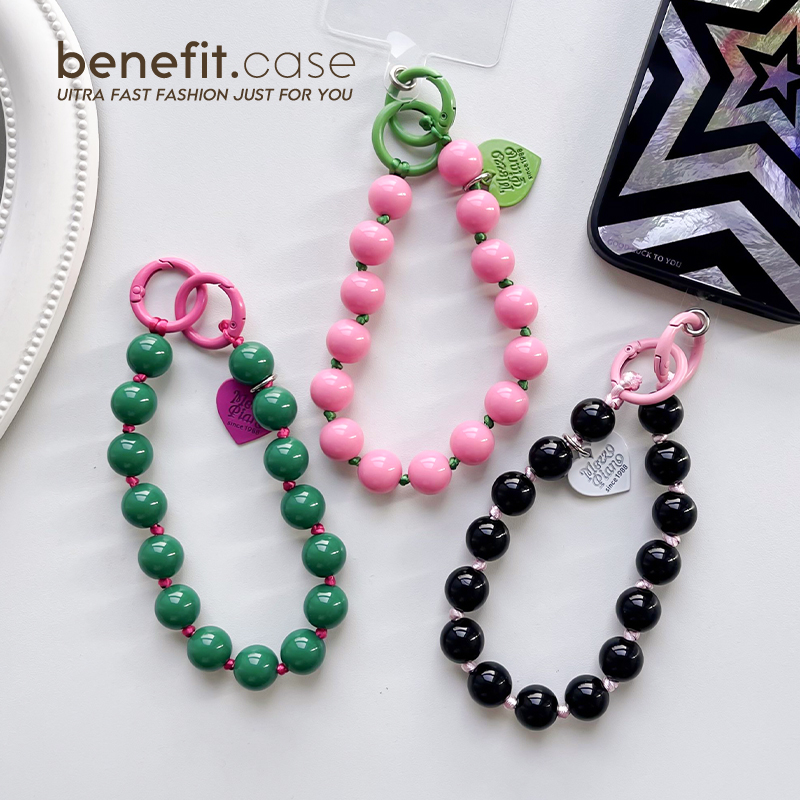 benefit创意手机壳挂件链条吊坠ins风仙女风水晶韩风少女手链多巴胺爱心彩色串珠防摔手腕带适用所有手机型号