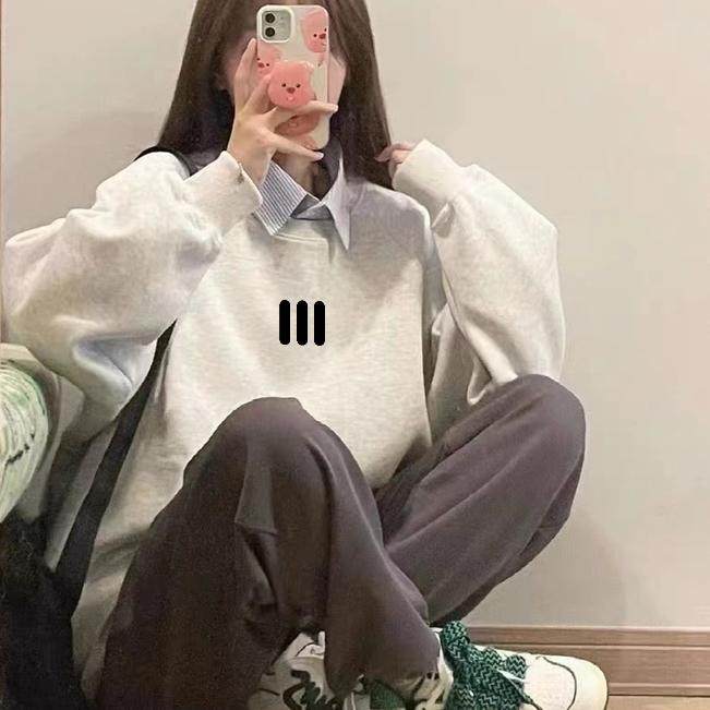 纯棉美式潮牌高级感圆领卫衣女宽松oversize春秋慵懒小众长袖上衣