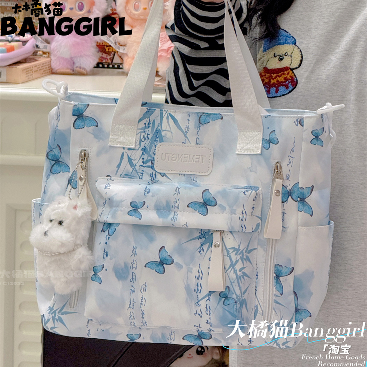 国风大容量轻便单肩斜挎包小众设计手提托特包学生上课补习通勤包