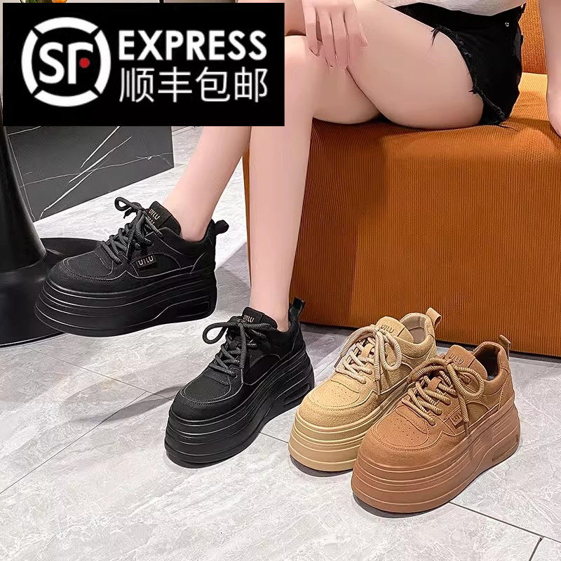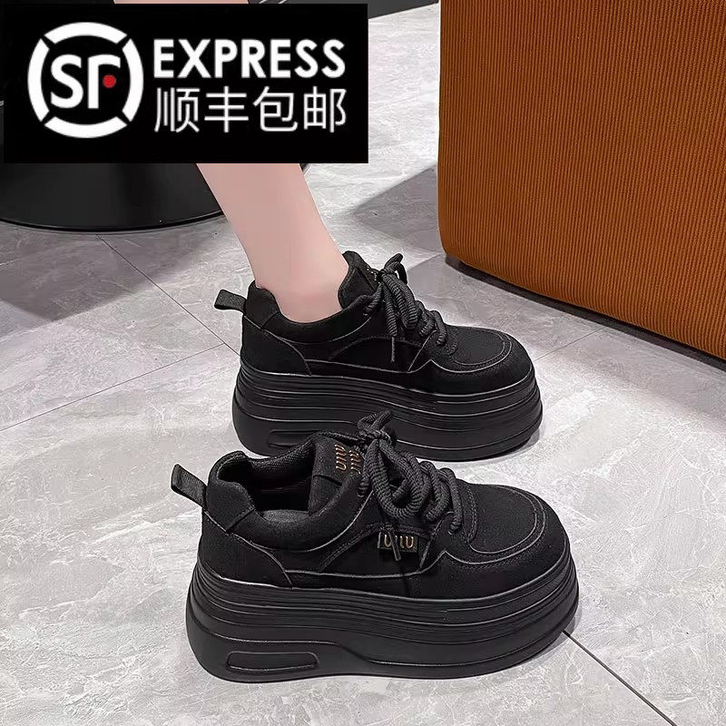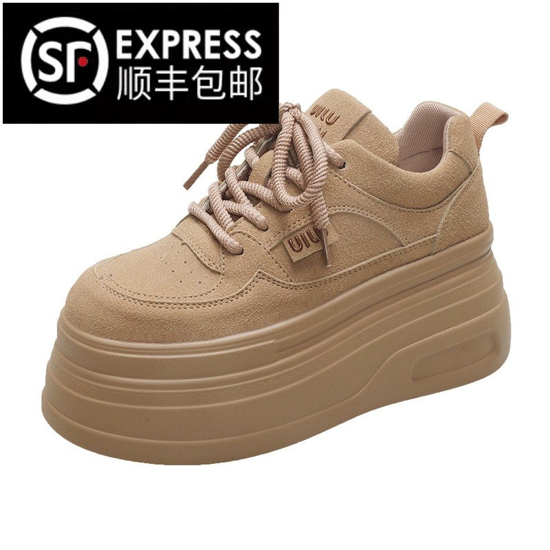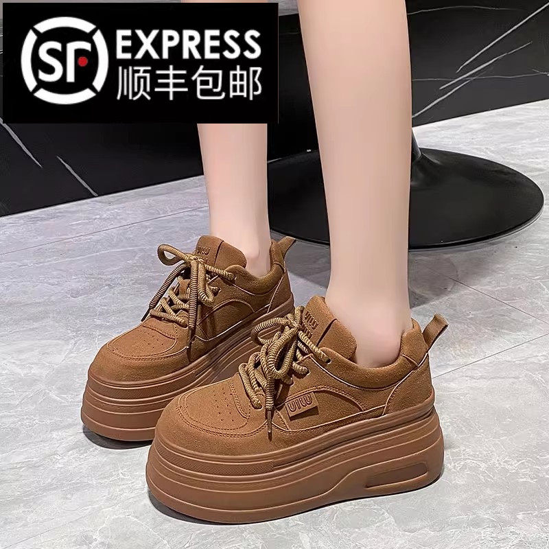 小个子厚底增高8cm磨砂松糕鞋面包鞋女2025春新款休闲单鞋板鞋女