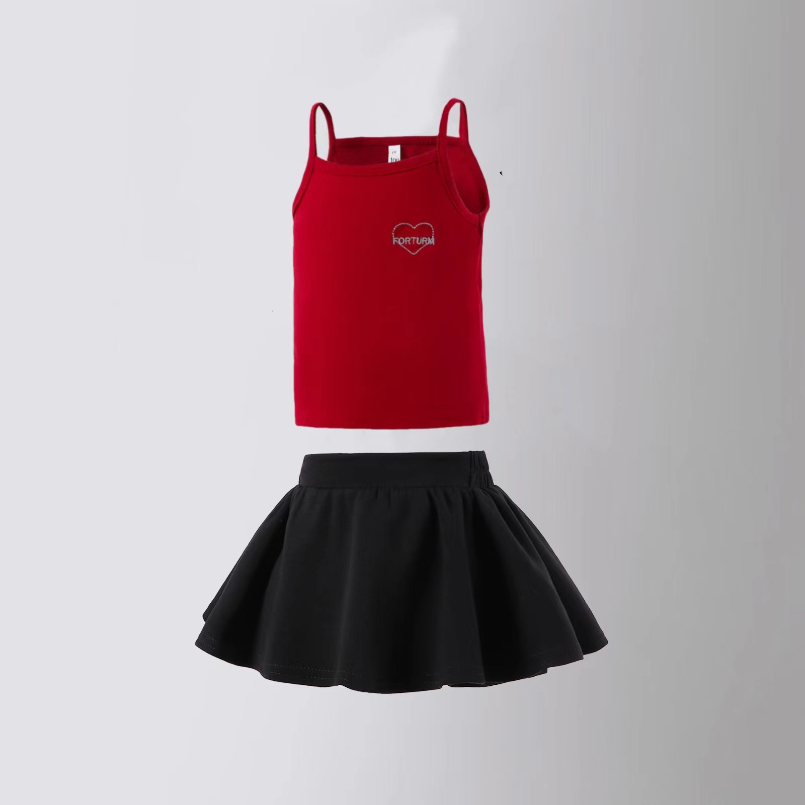 2025夏季女童新款防走光半身蓬蓬裙松紧腰短裙高腰黑色伞裙大摆裙