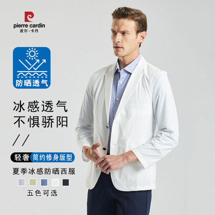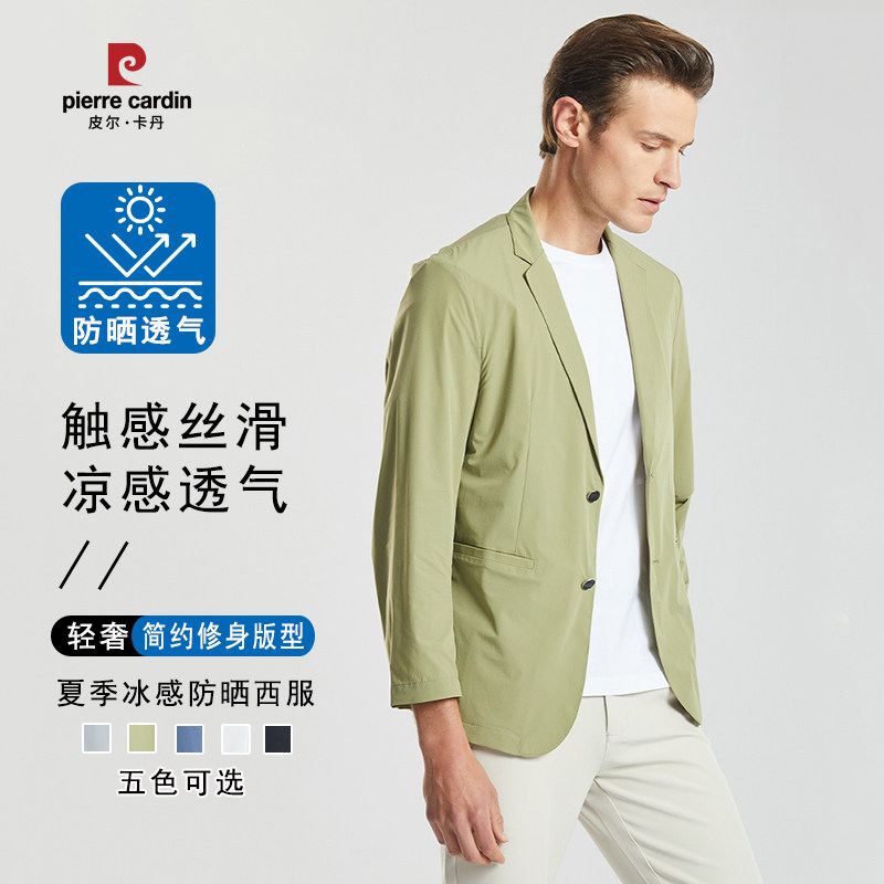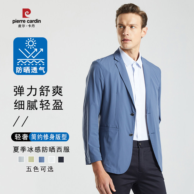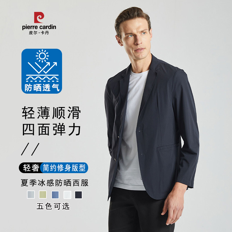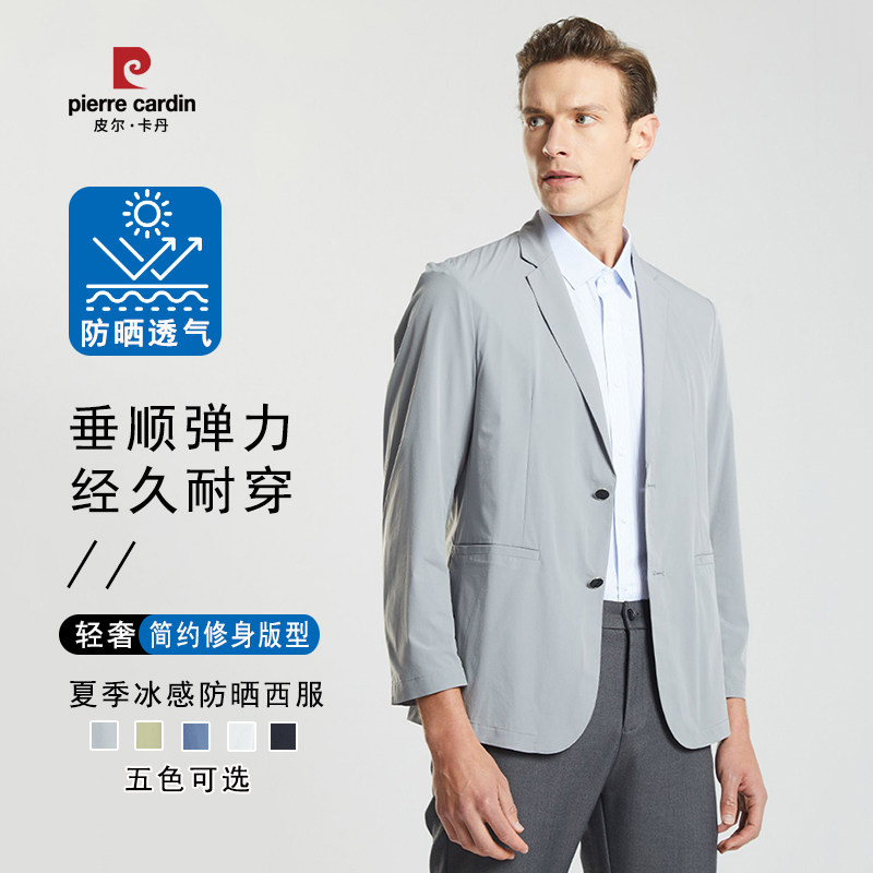 皮尔卡丹冰丝轻奢西装男士夏季薄款休闲西服免烫防晒单西外套上衣