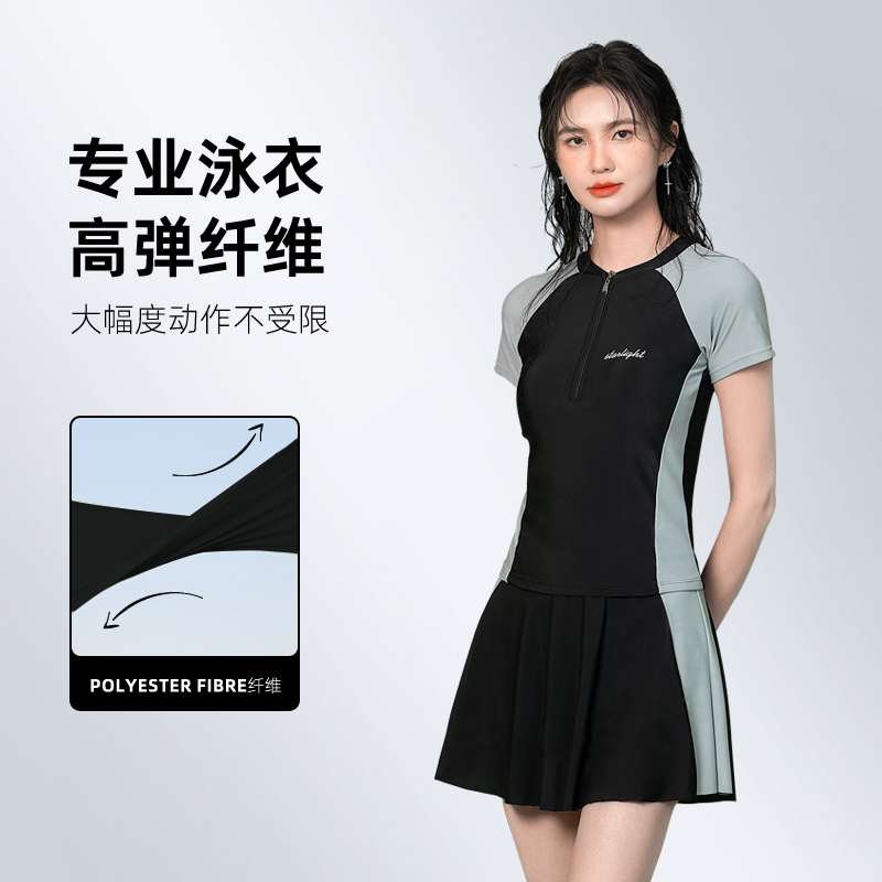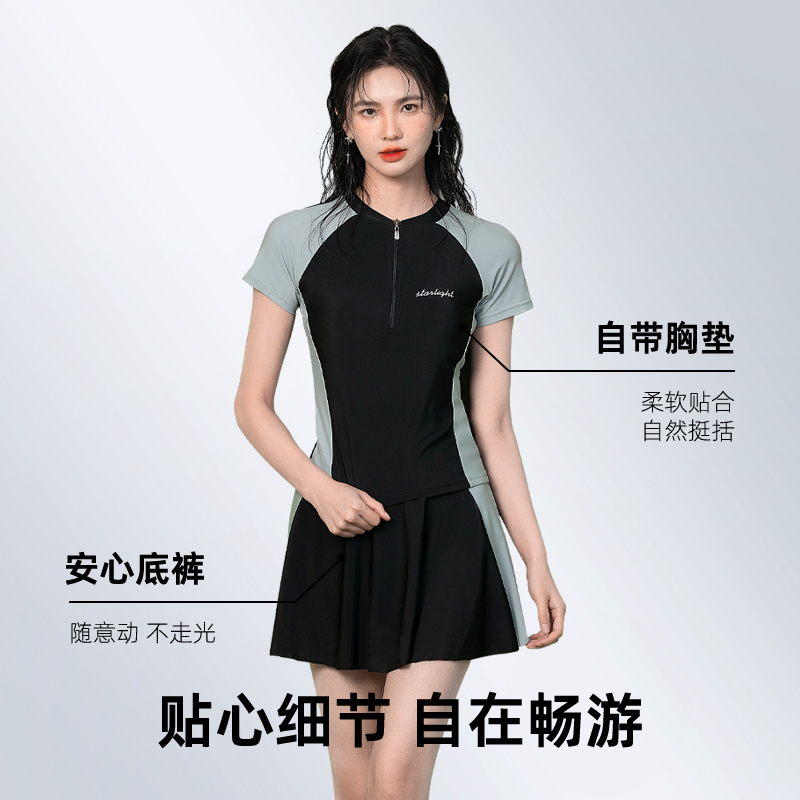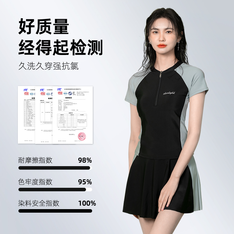 分体女士泳衣新款泡温泉成人保守泳装游泳馆专用三件套裙式游泳衣