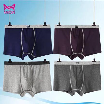 猫人正品内裤男士莫代尔棉平角裤四季款大码性感无痕透气四角短裤