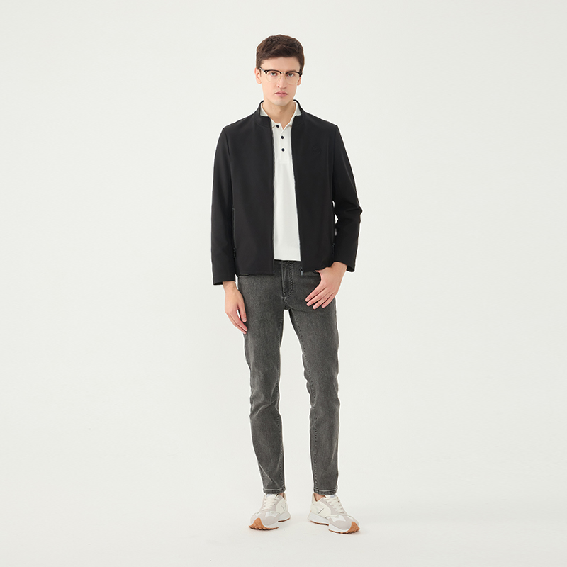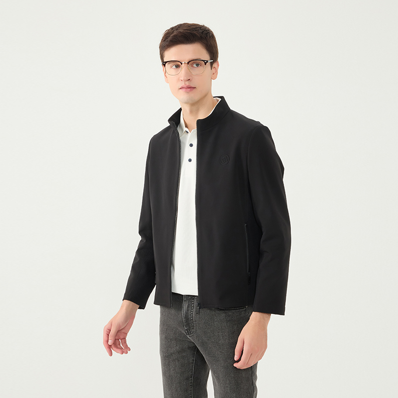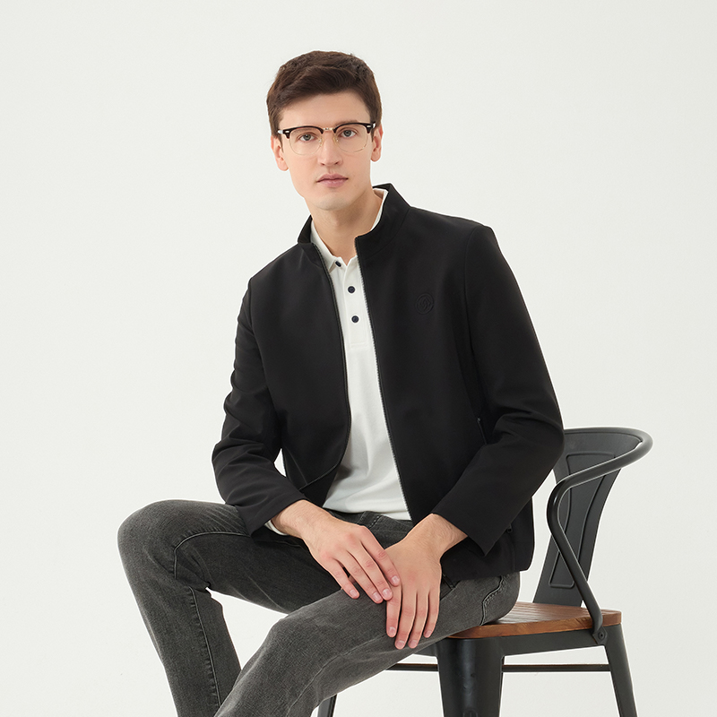 DIDIBOY秋季款男士立领短款简约商务弹力夹克外套男装黑色上衣