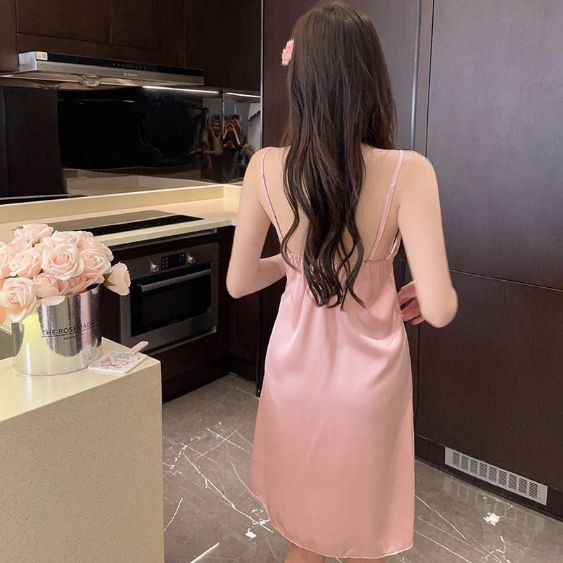 薄款冰丝夏季甜美吊带睡裙带胸垫