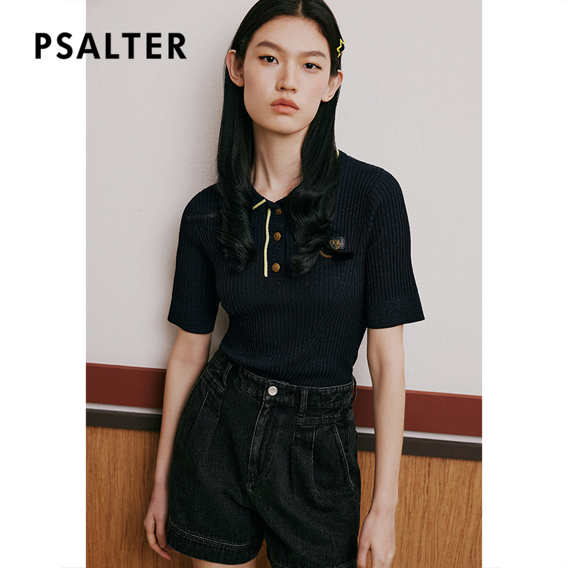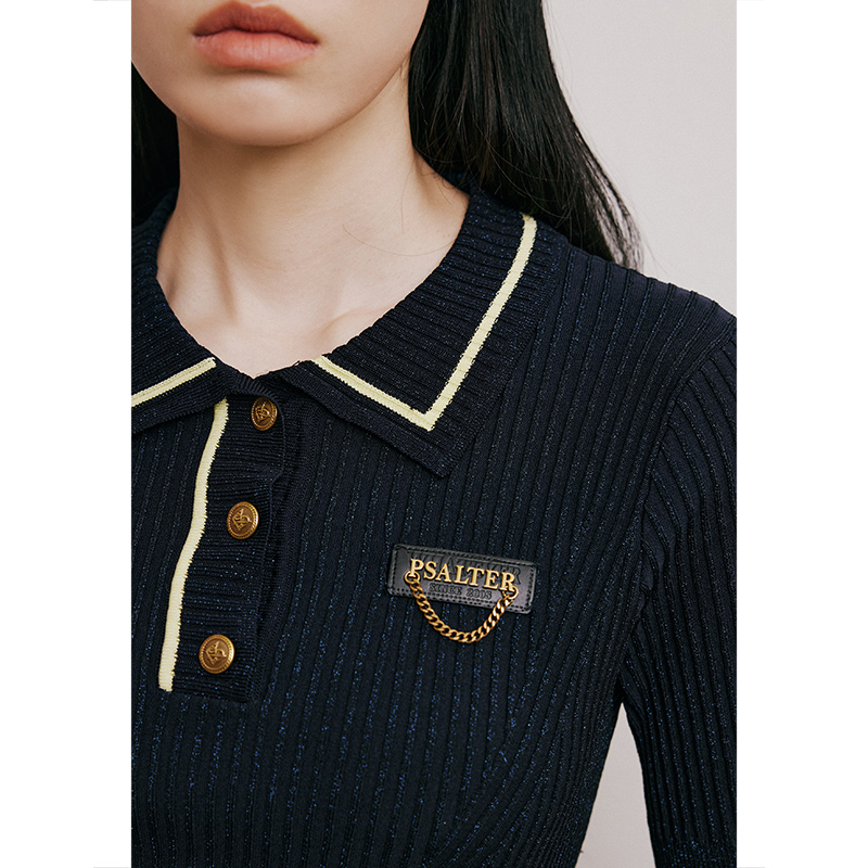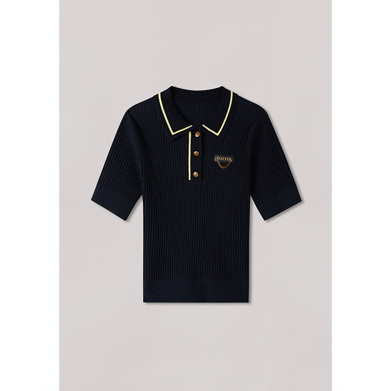 诗篇夏修身显瘦polo领条纹短袖针织衫