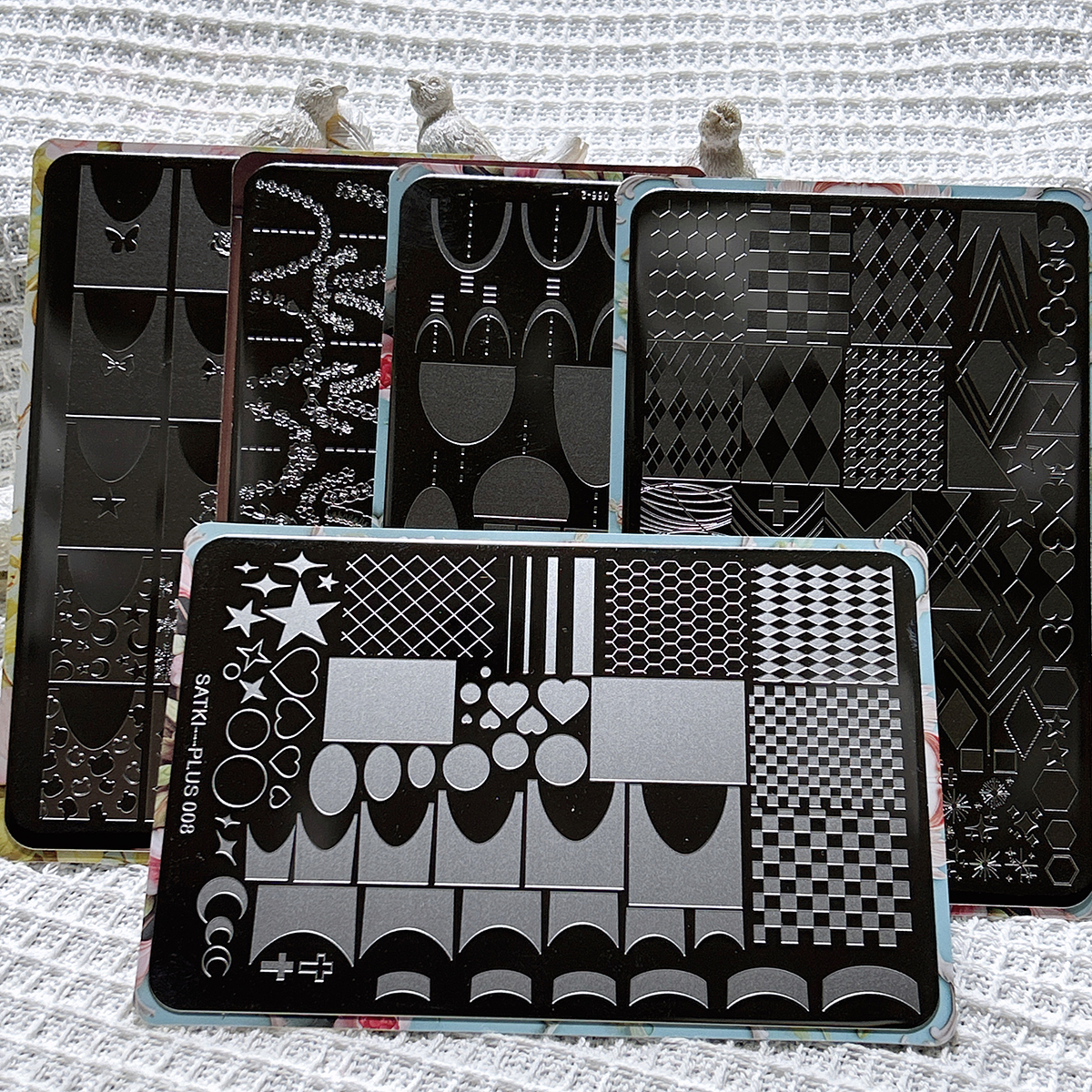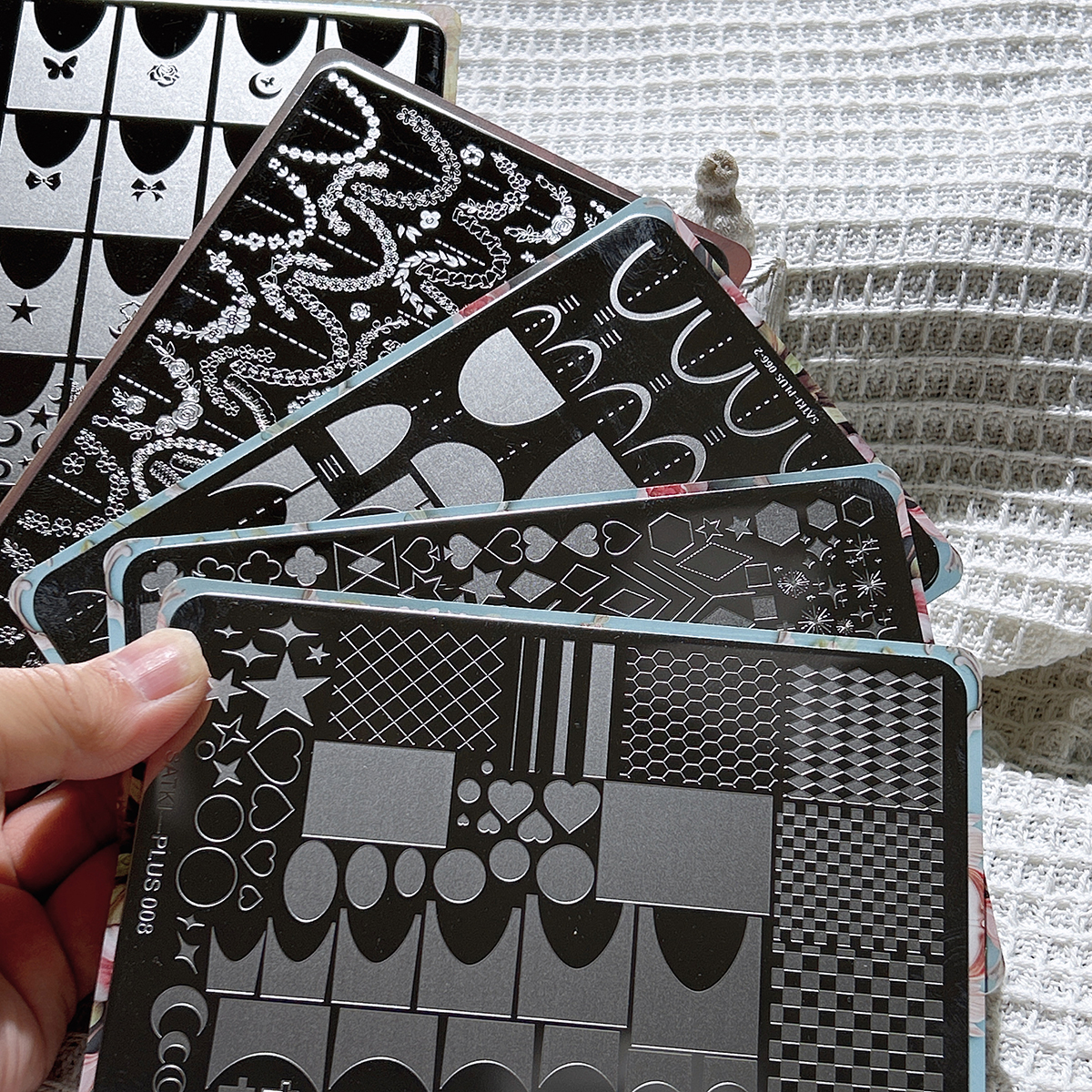 【14号车】美甲新手法式免手绘棋盘格千鸟格渐变蛇纹格印花板基础