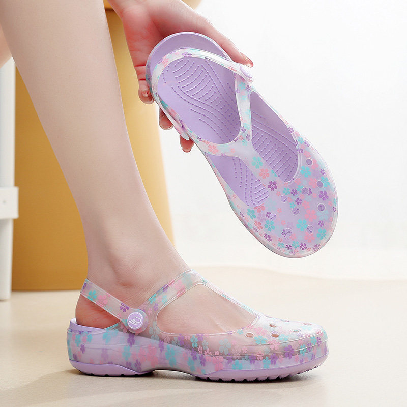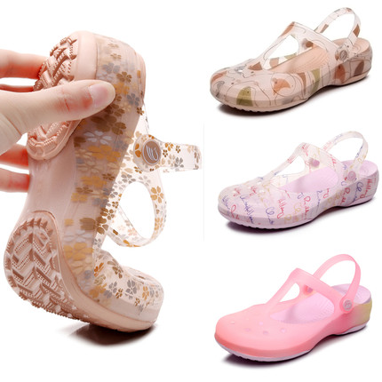 正品洞洞鞋女夏季时尚防滑沙滩鞋软底护士果冻拖鞋坡跟凉拖鞋外穿