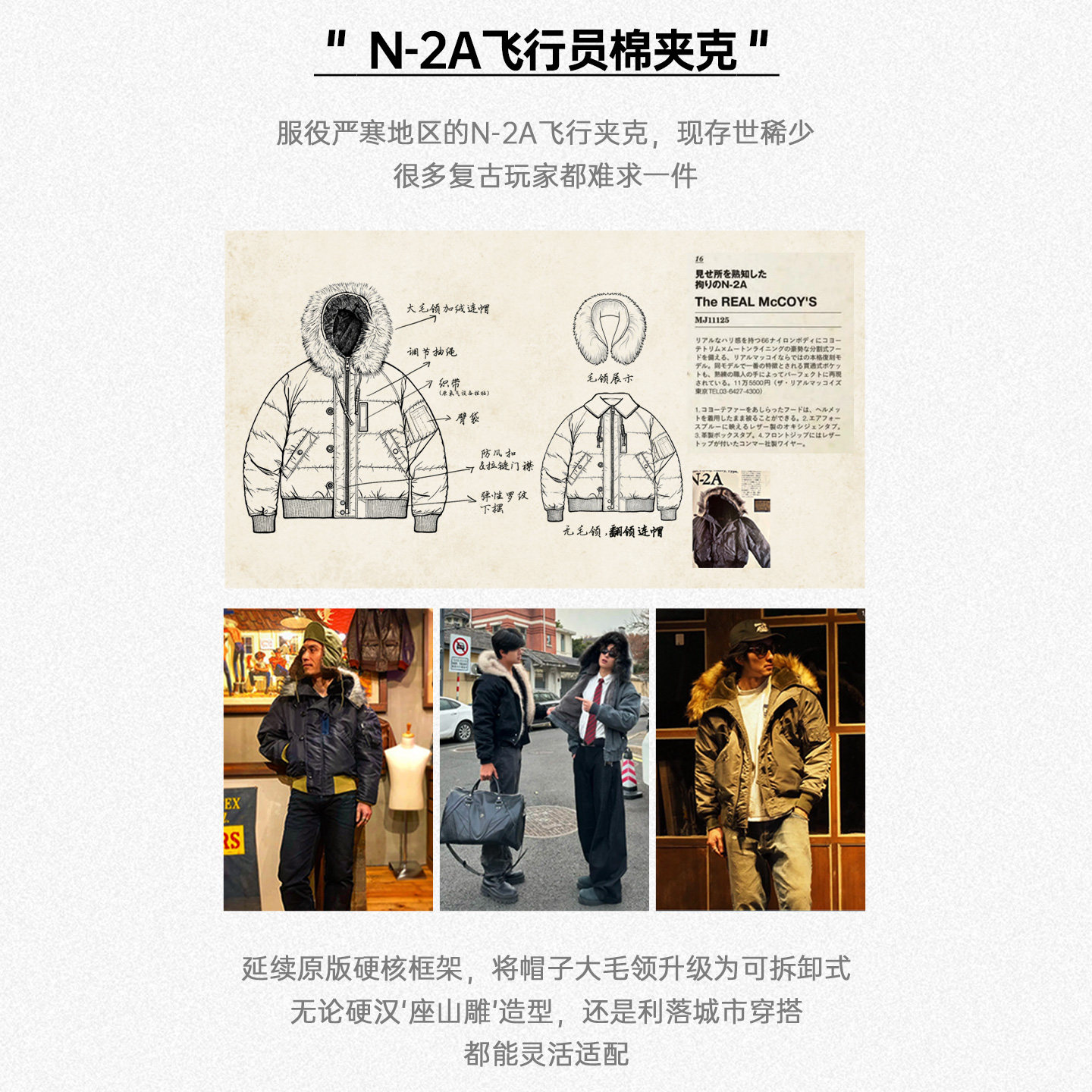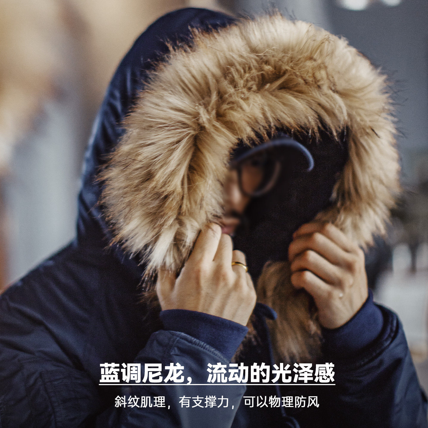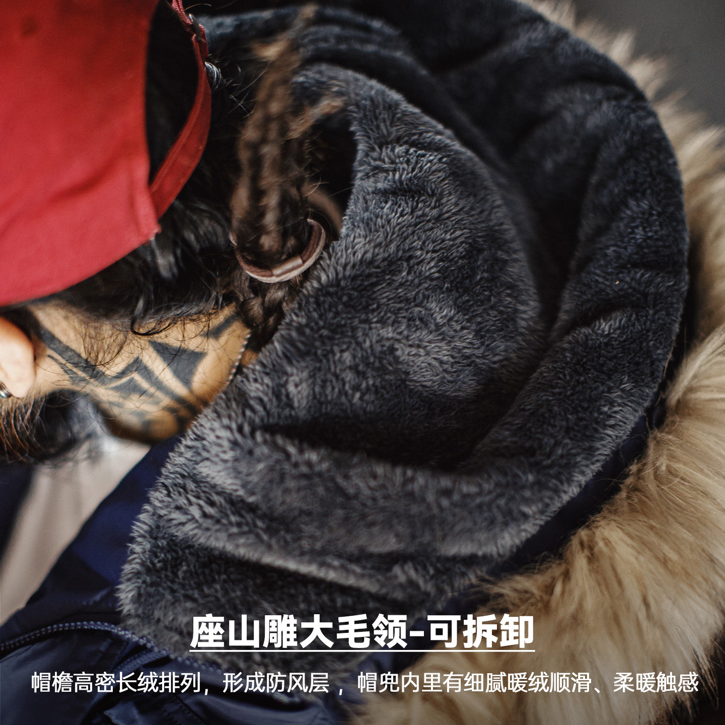 马登工装美式复古N2A毛领派克服蓝色座山雕短款棉服夹克外套男冬
