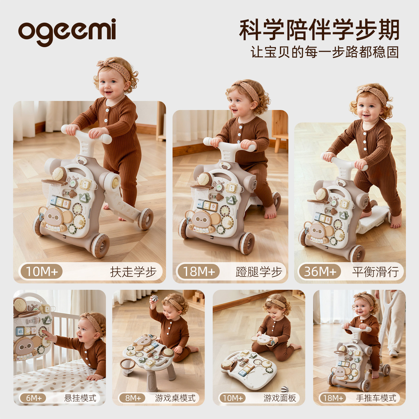 叽米宝宝婴儿多功能走路学步车手推车儿童6到18个月一周岁防侧翻