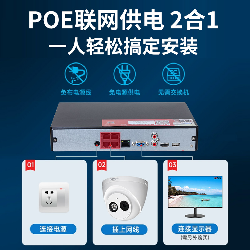 大华监控摄影头400万全彩高清夜视枪机手机远程室外智能摄像头