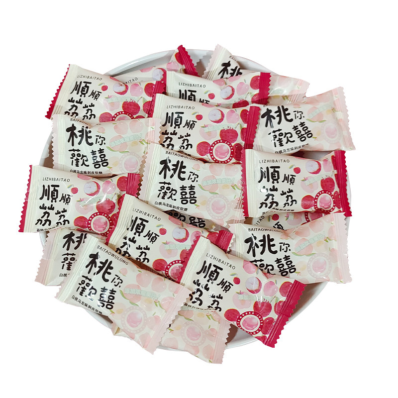 龙客白桃乌龙味剥皮软糖高颜值情话荔枝白桃味Q糖喜气糖果批发