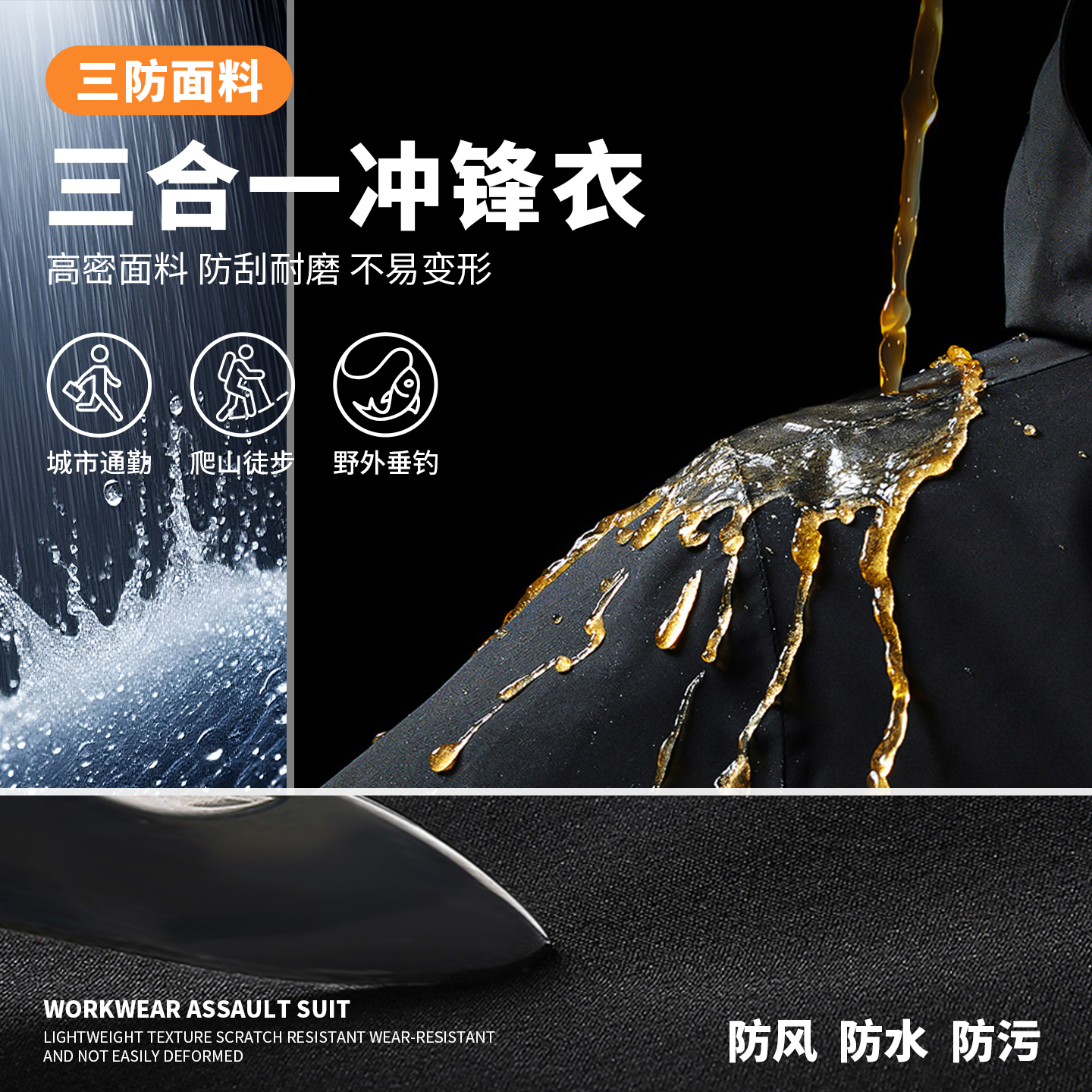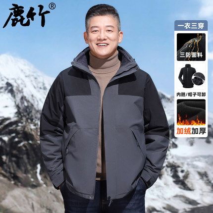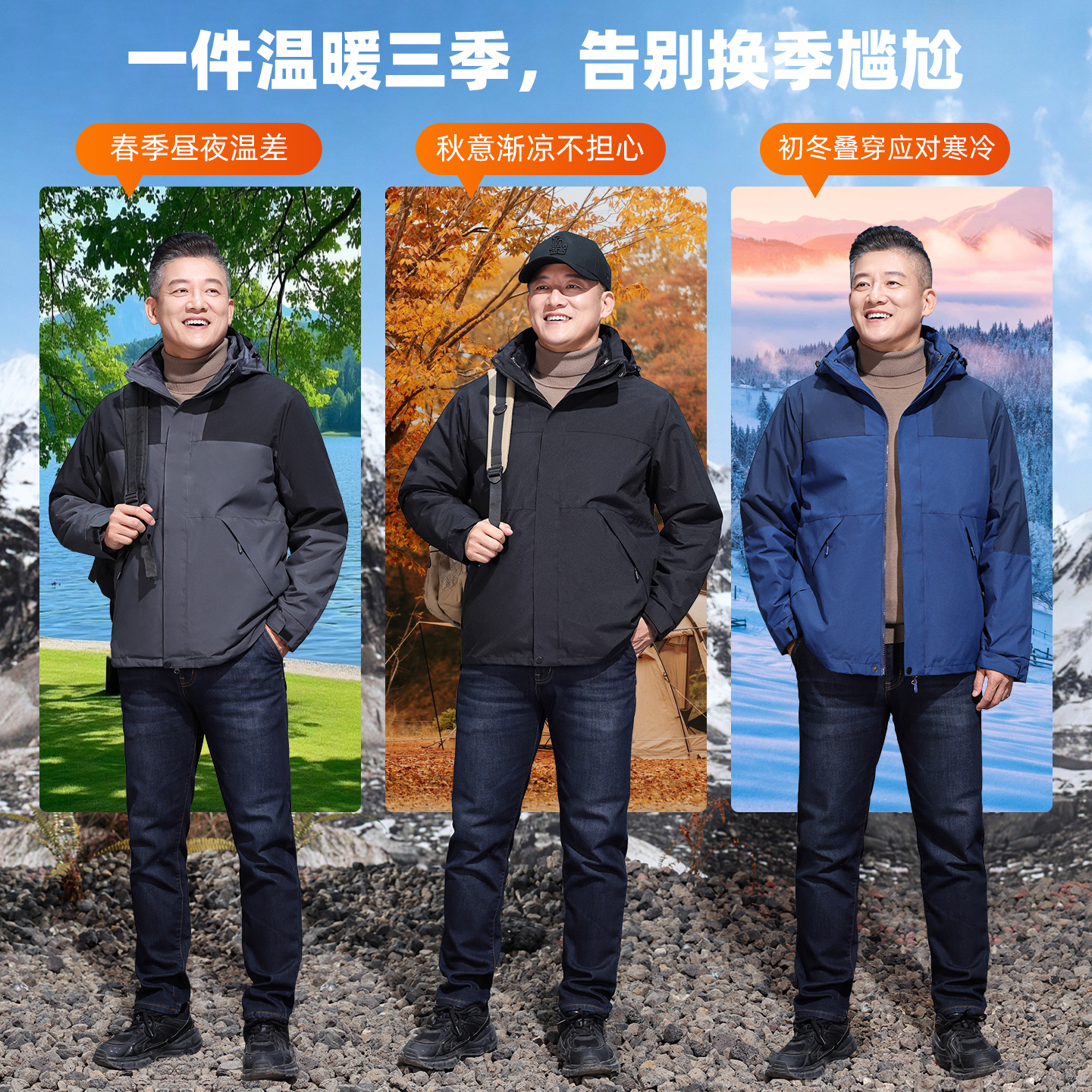 新款爸爸秋冬季外套加绒加厚中年男士三合一冲锋衣中老年人套装男
