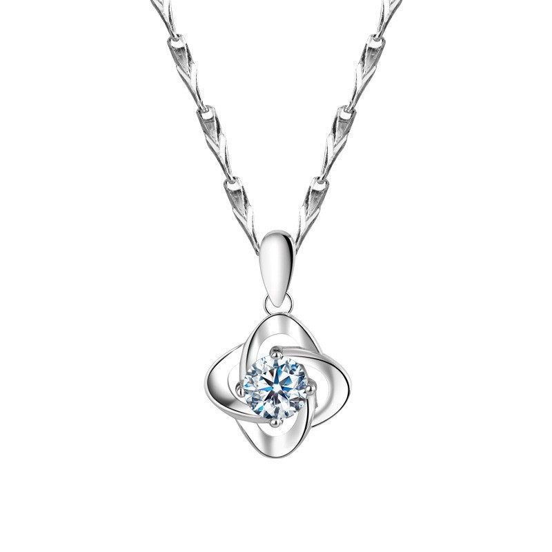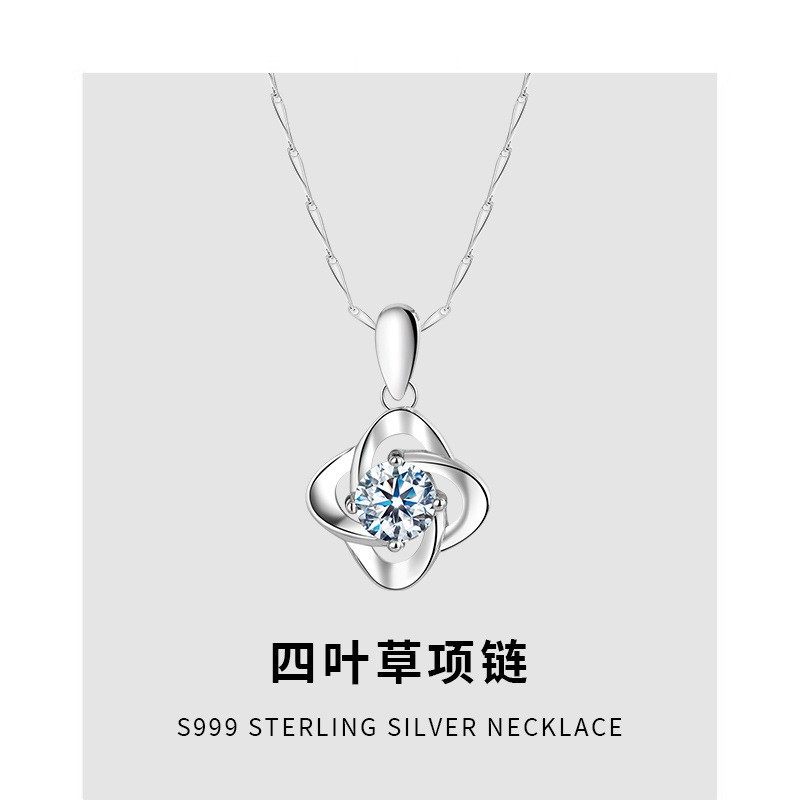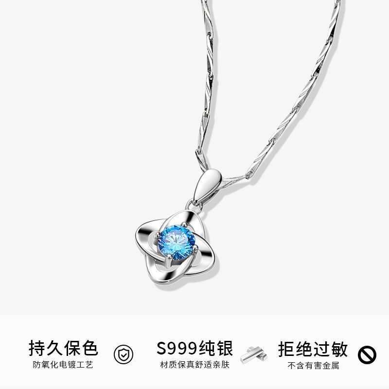 S999足银项链女四叶草海洋之心蓝色锆石锁骨链高级感百搭新款