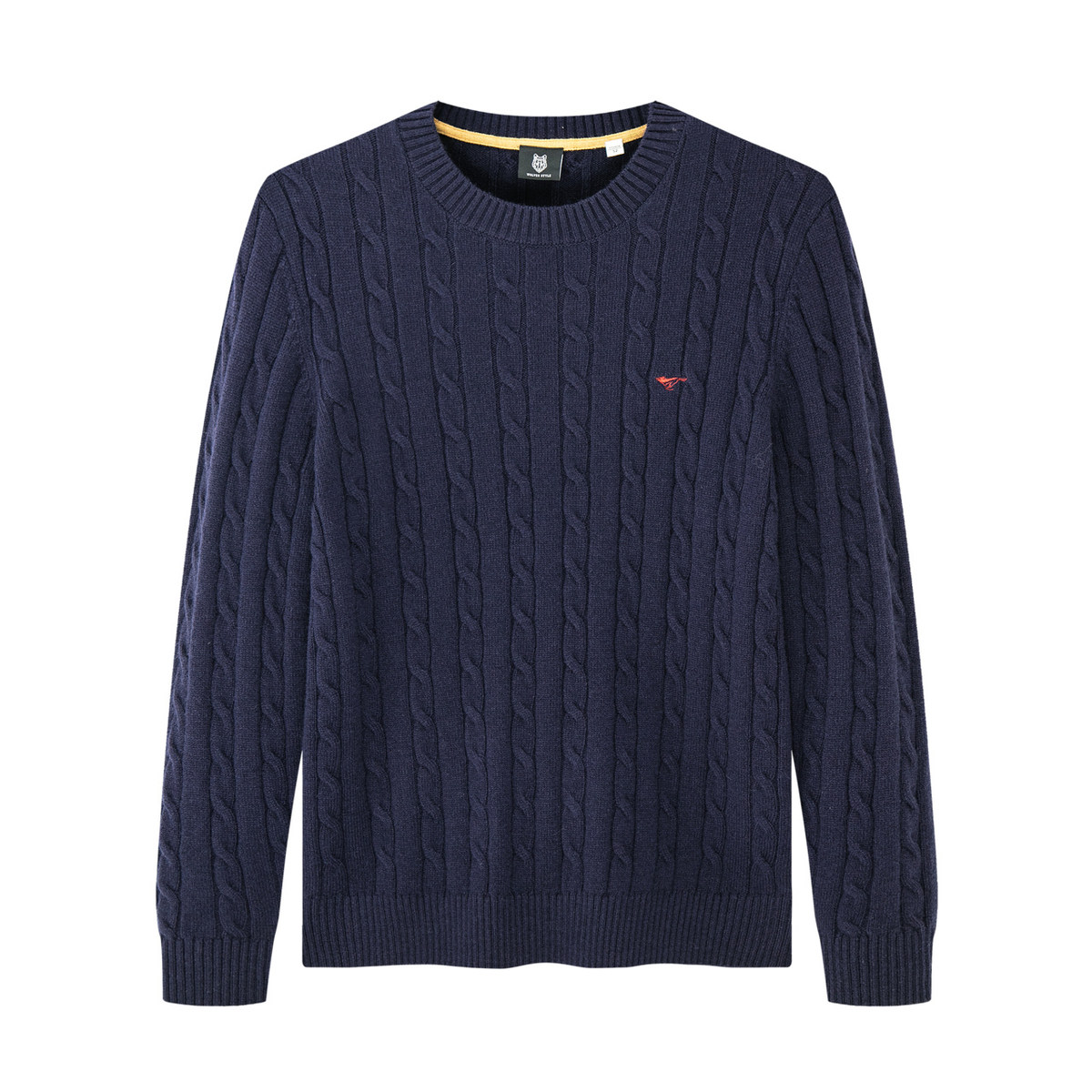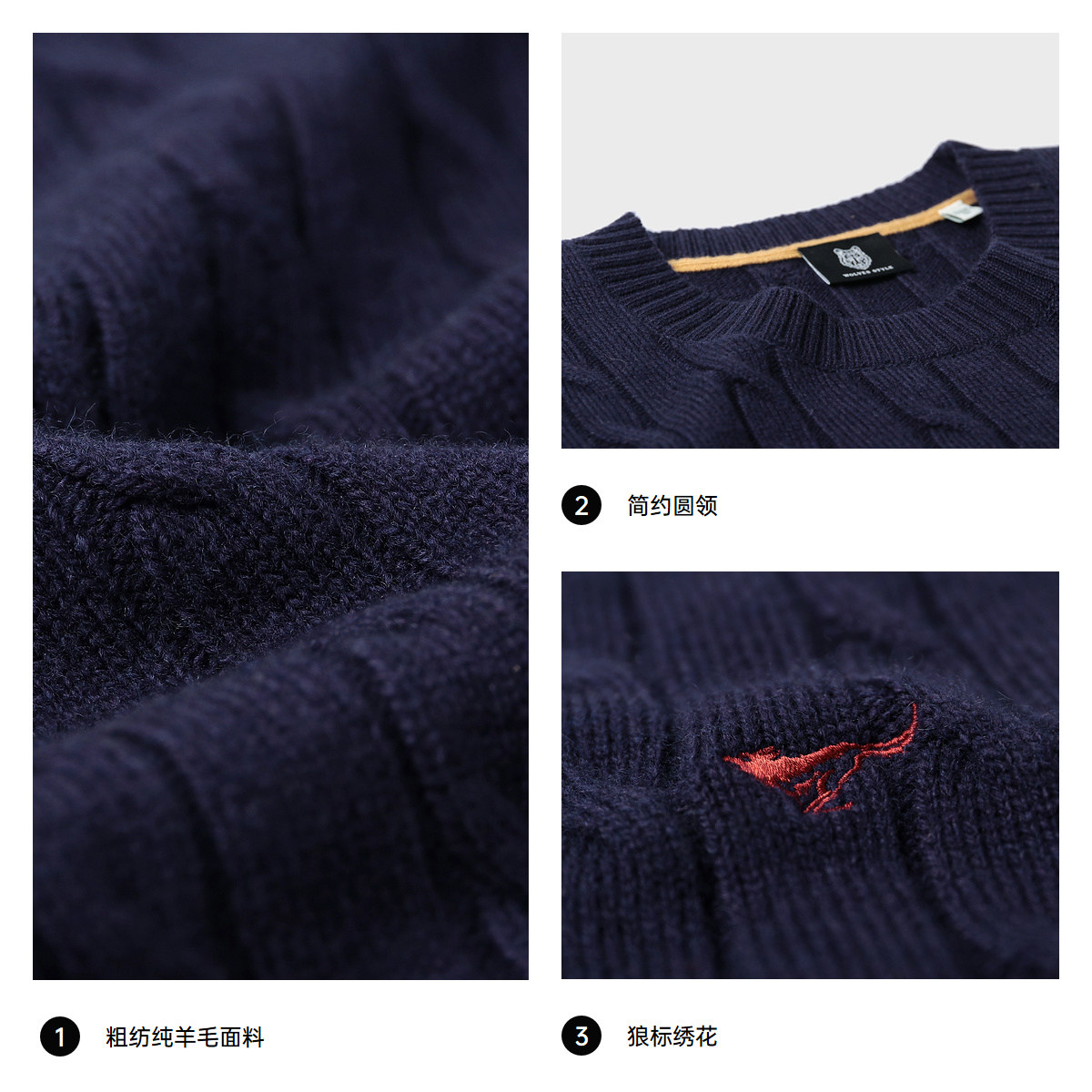 【100%纯羊毛】七匹狼纽花厚款圆领毛衣男2025冬季新款纯色针织衫