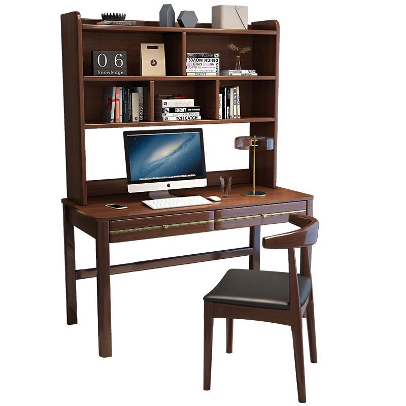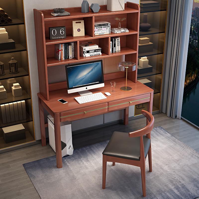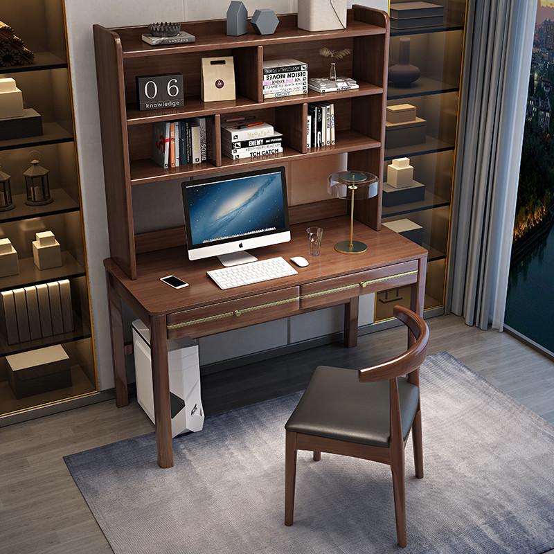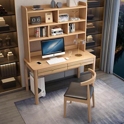 实木书桌书架组合一体简约现代电脑台式桌新中式办公桌家用写字桌