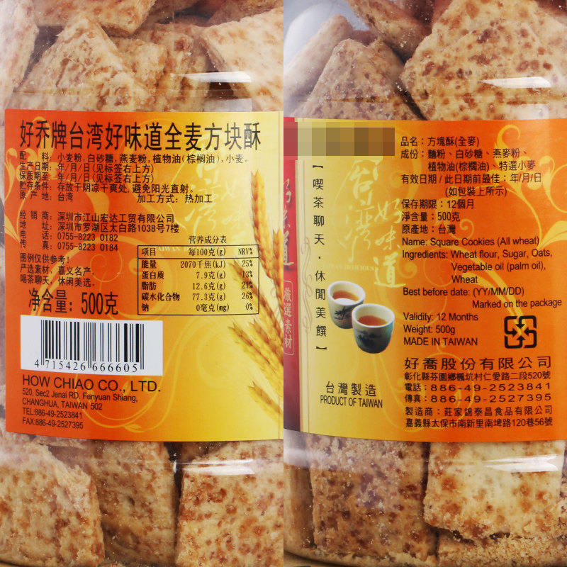 台湾进口干好乔牌好味道休闲零食咸鸭蛋黄方块酥全麦糕点特产500g