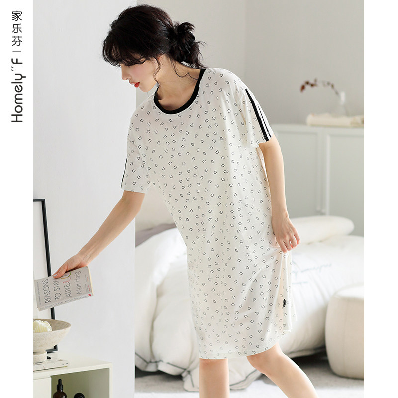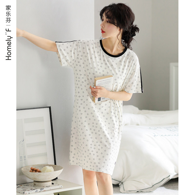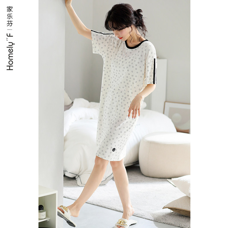 家乐芬睡裙女士睡衣裙子夏季夏天夏款纯棉短袖长款大码薄款可外穿