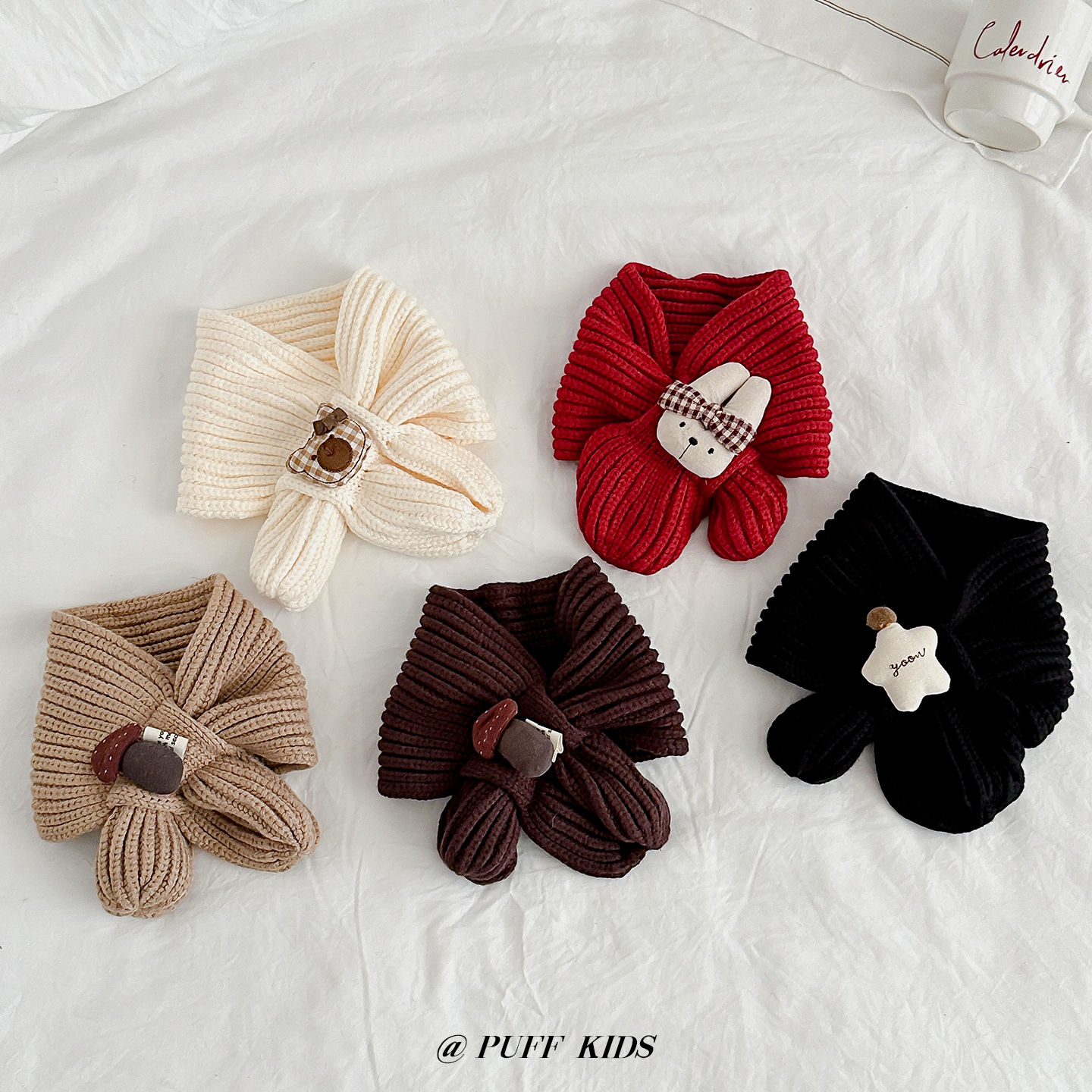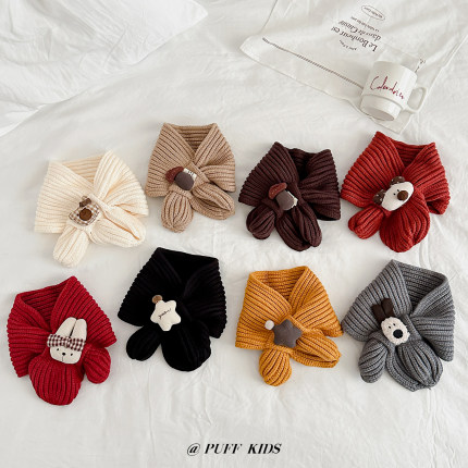 婴儿围巾秋冬季可爱卡通宝宝针织毛线交叉围脖男女童百搭保暖围巾