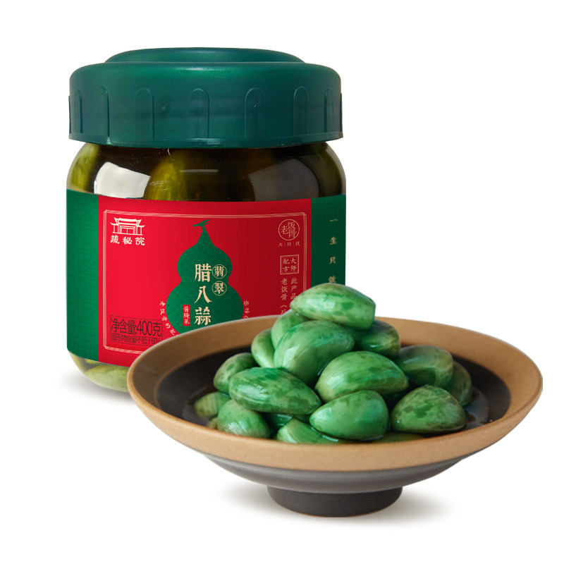 老饭骨翡翠腊八蒜400g/瓶腌制大蒜山东醋泡大蒜头绿色蒜下饭菜