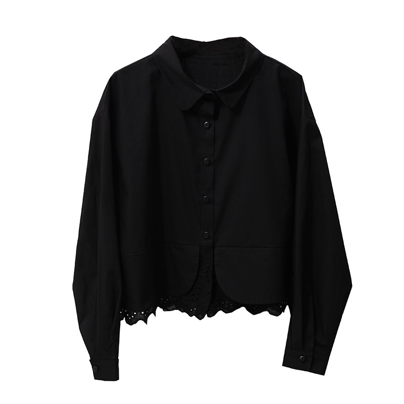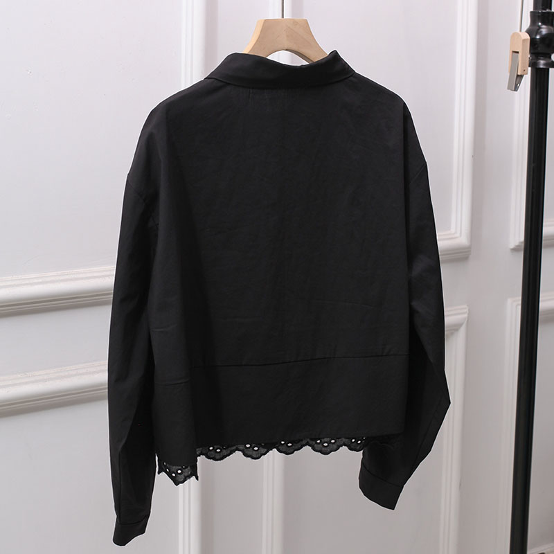 秋季新款日系衬衫女大码宽松百搭蕾丝拼接白色长袖上衣文艺休闲胖