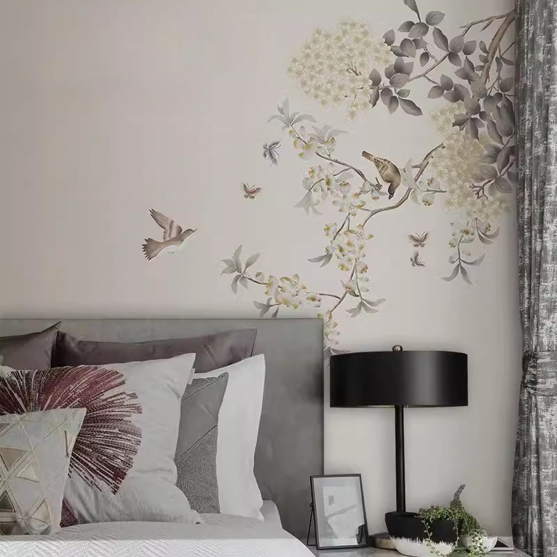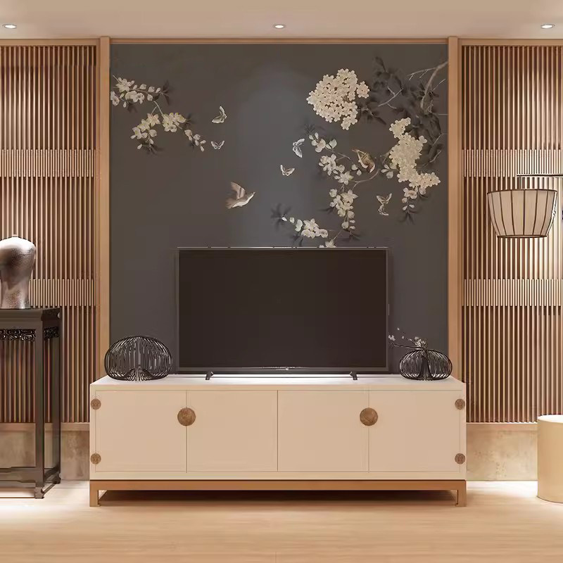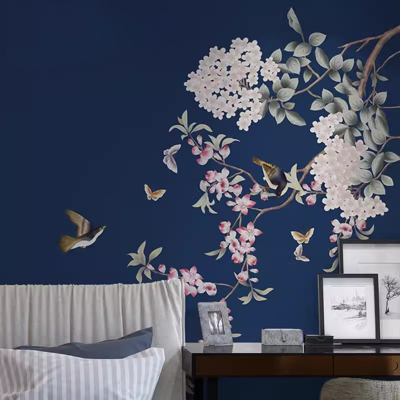 3d立体新中式花鸟床头墙纸电视背景墙壁纸客厅沙发影视墙装饰壁布