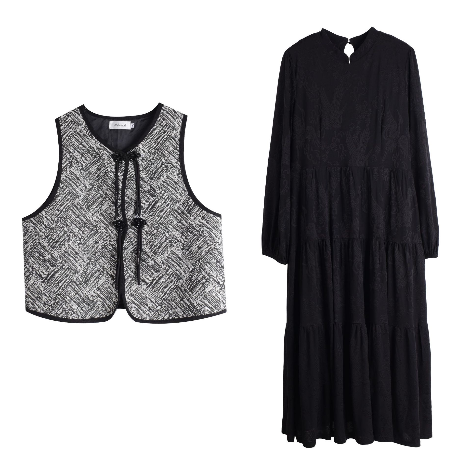 大码韩版气质连衣裙秋冬季大码女装胖MM马甲+连衣裙两件套连衣裙