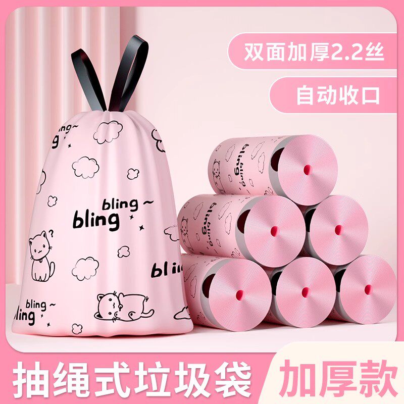 3卷印花抽绳垃圾袋家用手提式特厚家用大号车载塑料袋厨房新款