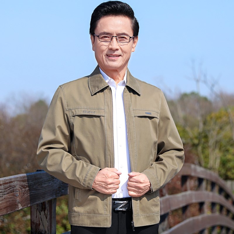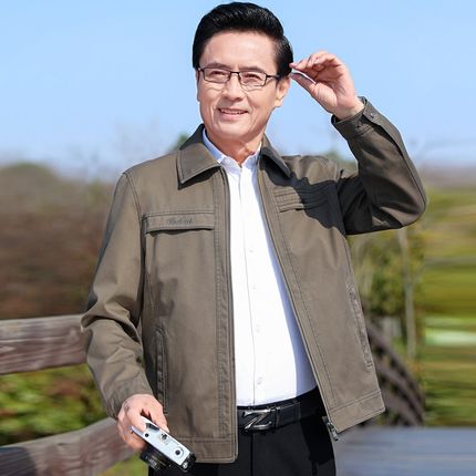 纯棉中老年男士夹克爸爸春装外套爷爷老人休闲上衣春秋款衣服宽松
