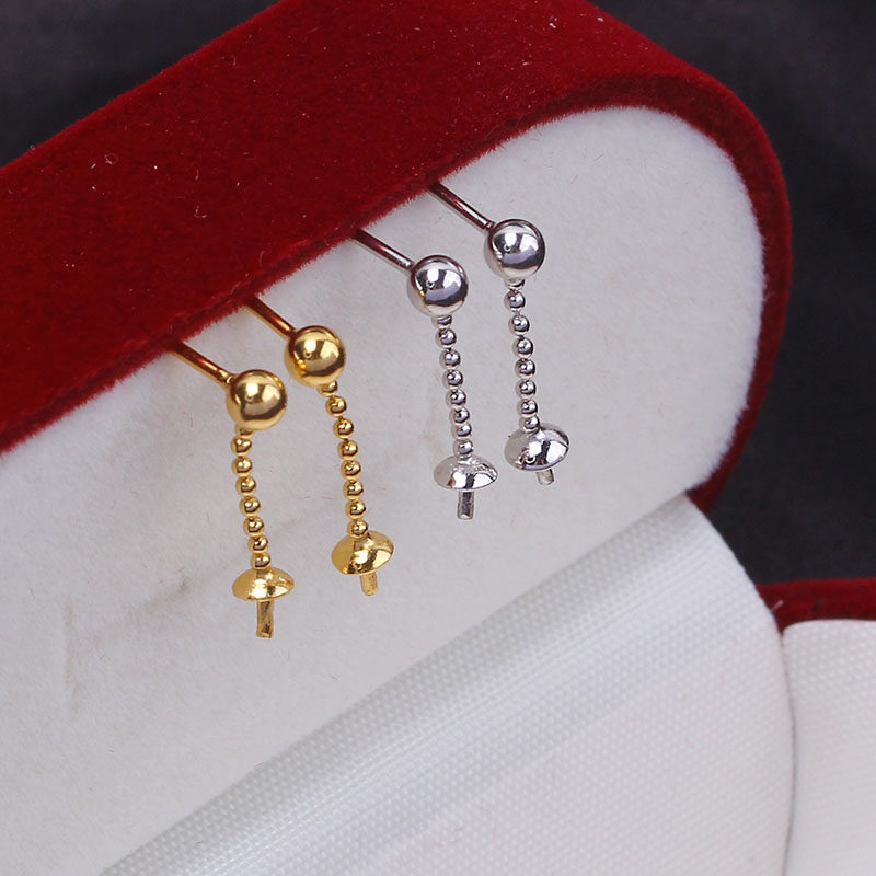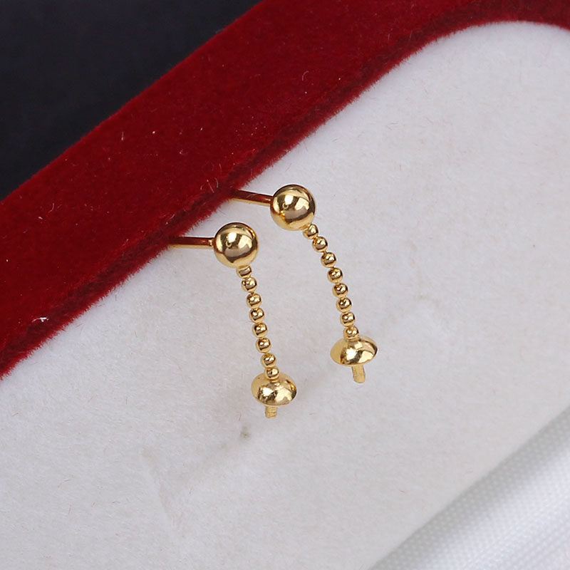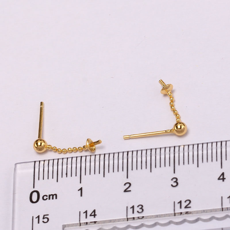 DIY珍珠配件 S925纯银简约短款小金豆豆链点珠链耳线耳钉空托女