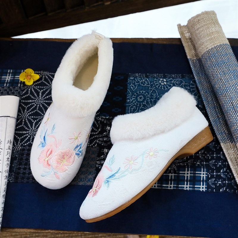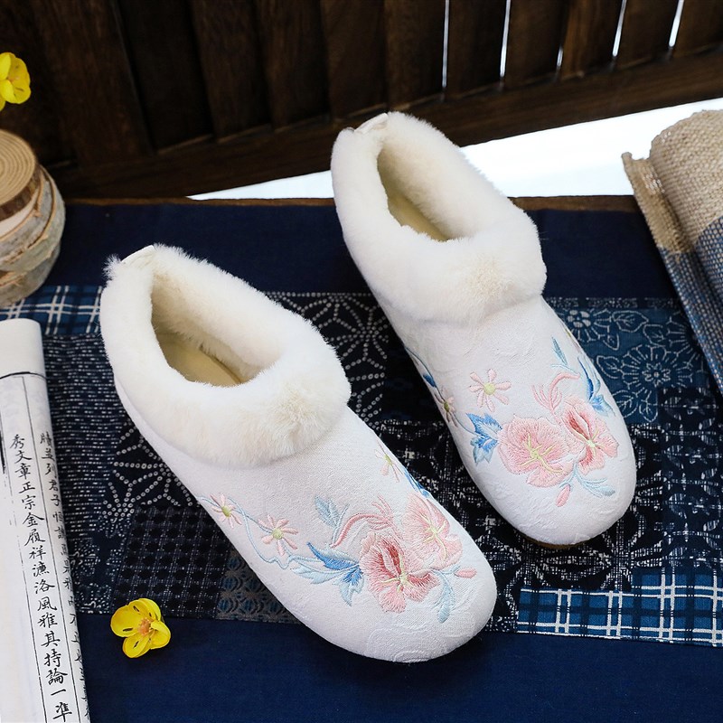 棉拖布鞋女棉鞋时尚o保暖鞋家居鞋圆头民族风绣花鞋毛口棉拖鞋