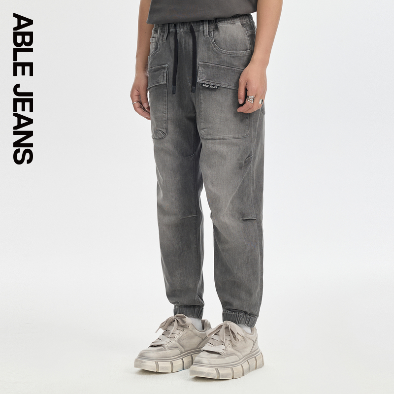 ABLE JEANS【工程师束脚滑板裤】男士水洗深烟灰工装牛仔裤